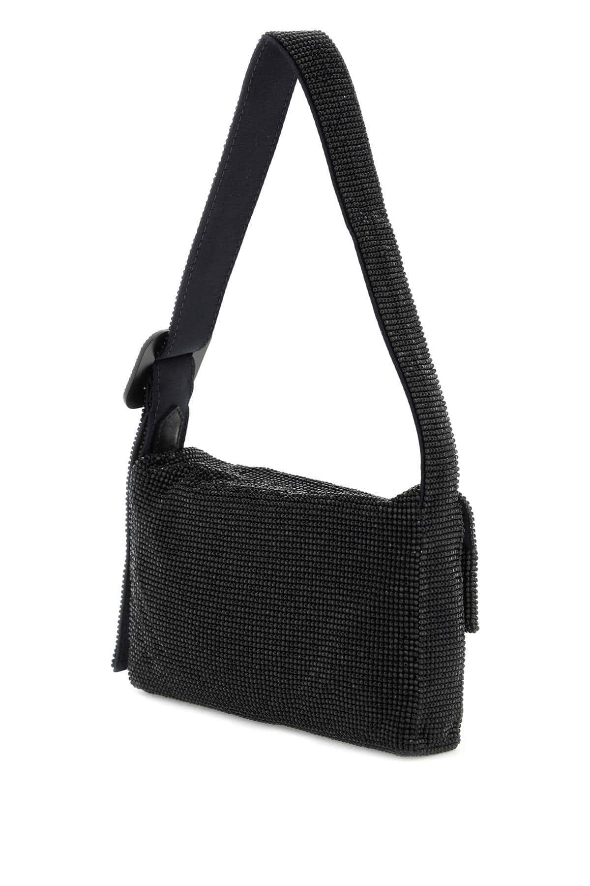 Vitty La Mignon bag by Benedetta Bruzziches handcrafted in metal mesh with strass. Handle with decorative buckle embellished with all-over rhinestones, zip closure under the flap, silk satin lining.