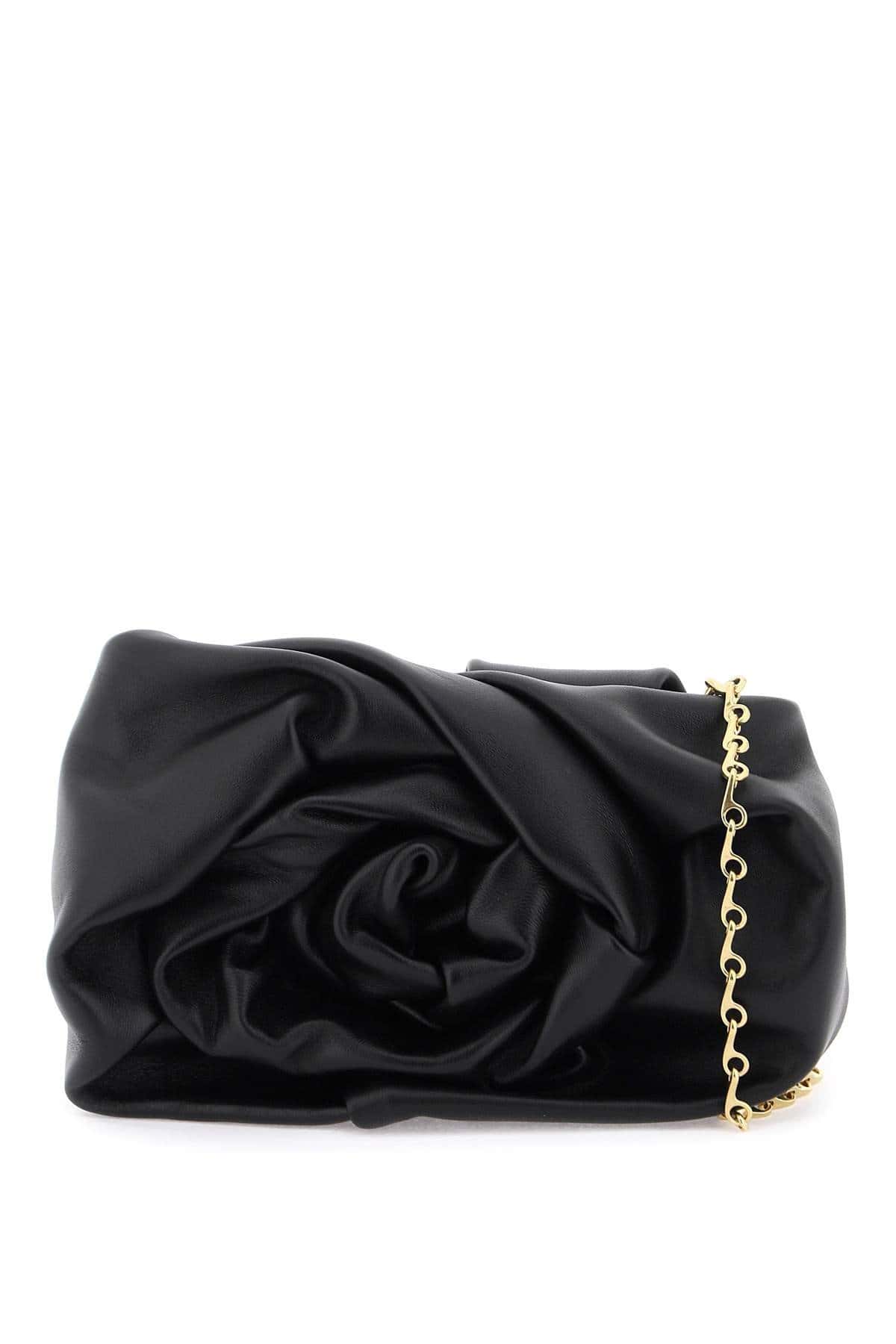 Rose mini crossbody bag by Burberry in leather featuring gathered front in the shape of a rose. Press-stud closure, leather-lined interior, chain shoulder strap. Gold-tone metalware.