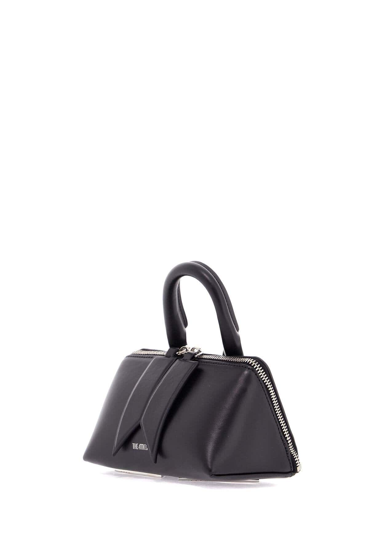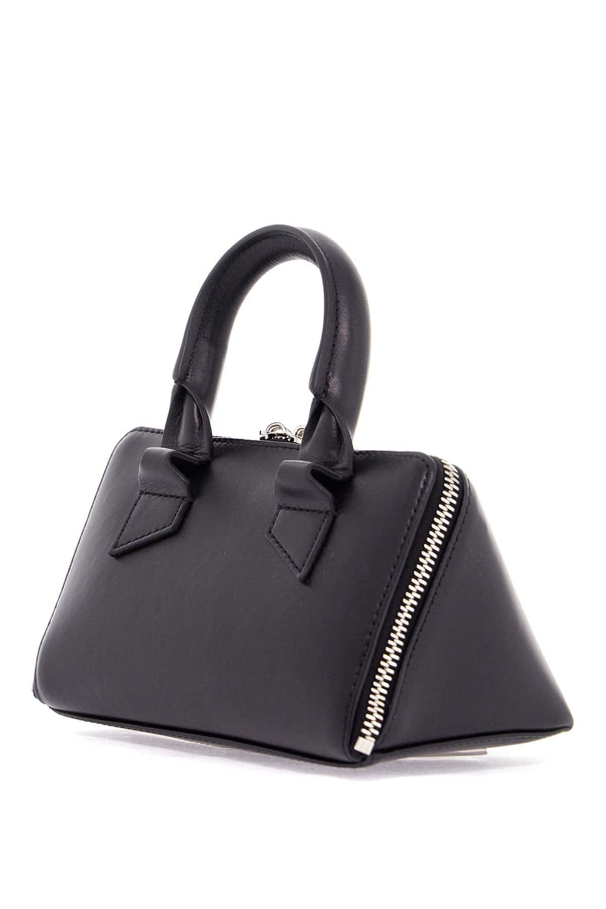 The Attico’s mini Friday bag is made of leather and features a triangular structure. It has a double zip closure with a large puller, a single handle, and a leather-lined interior with a small pocket and protective triangular feet at the base. The adjustable and removable shoulder strap can also be worn as a belt, and it is adorned with silver metallic accessories.