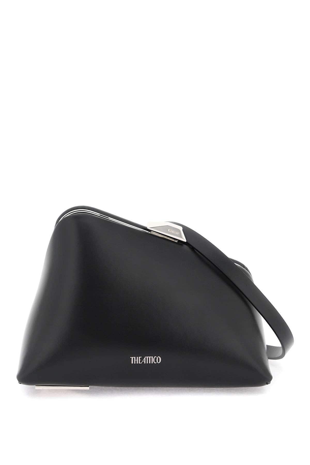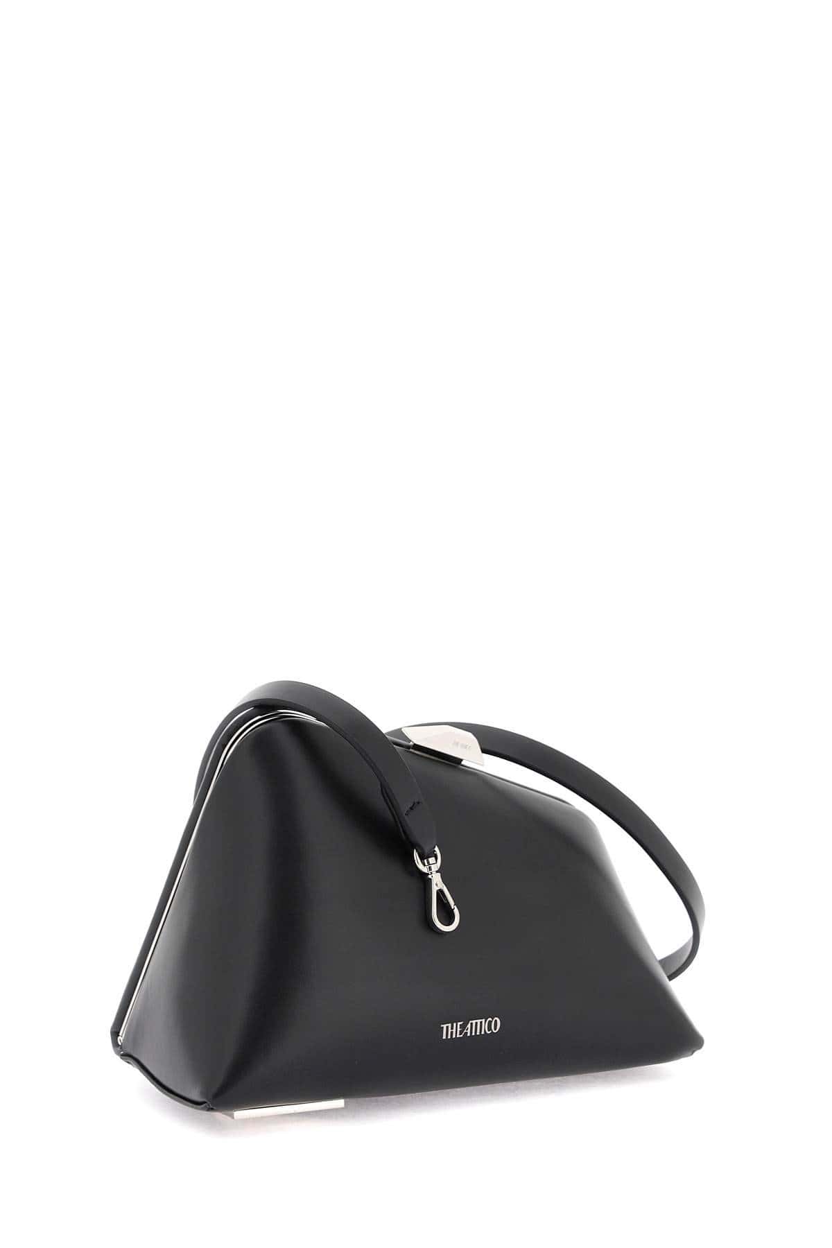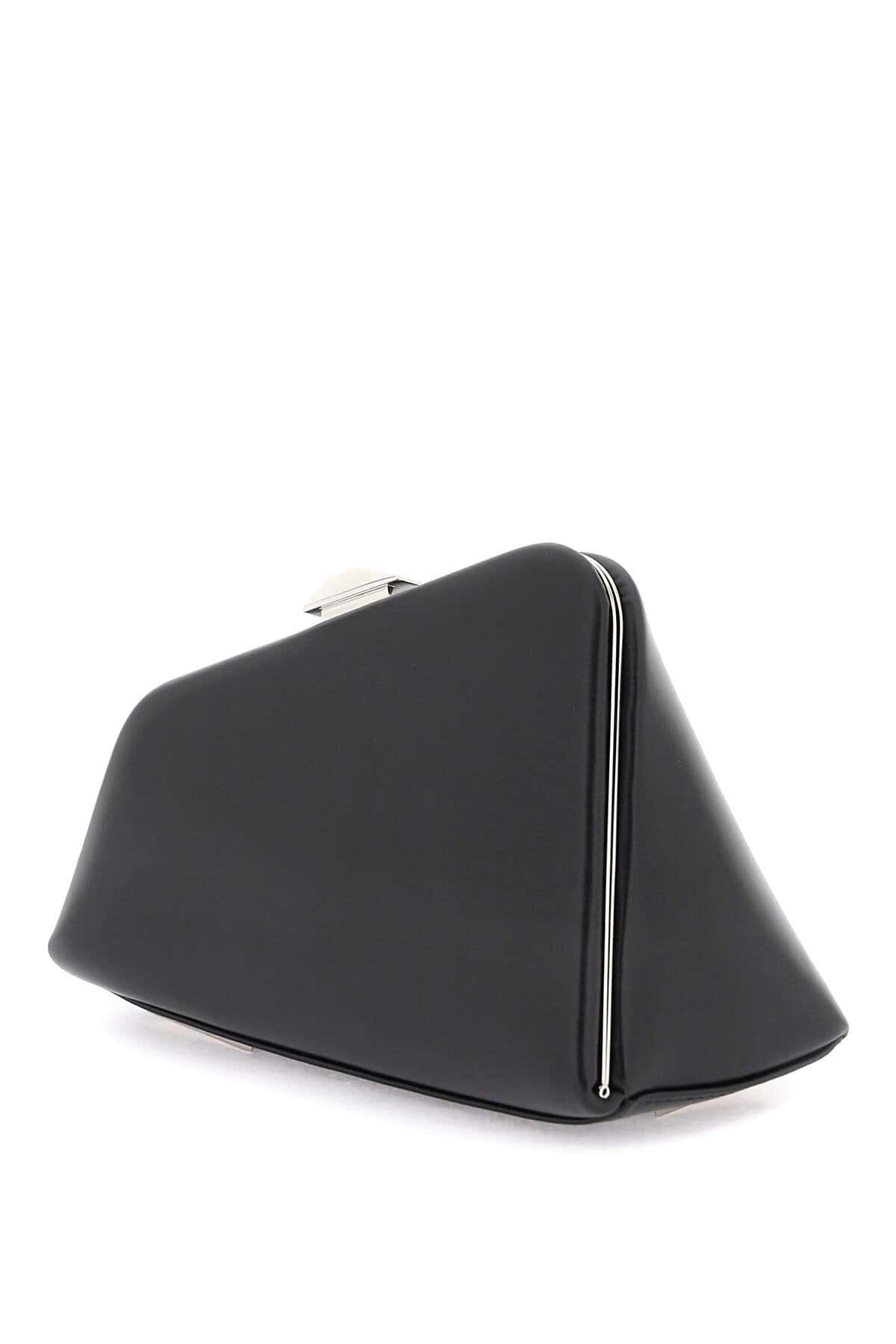 Midnight clutch by The Attico crafted in smooth leather and characterized by an asymmetrical design. It features top snap closure, leather-lined interior with one credit card slot, leather additional shoulder strap. FInished with gold-tone logo print at front and protective studs at base. Silver-finished metalware.