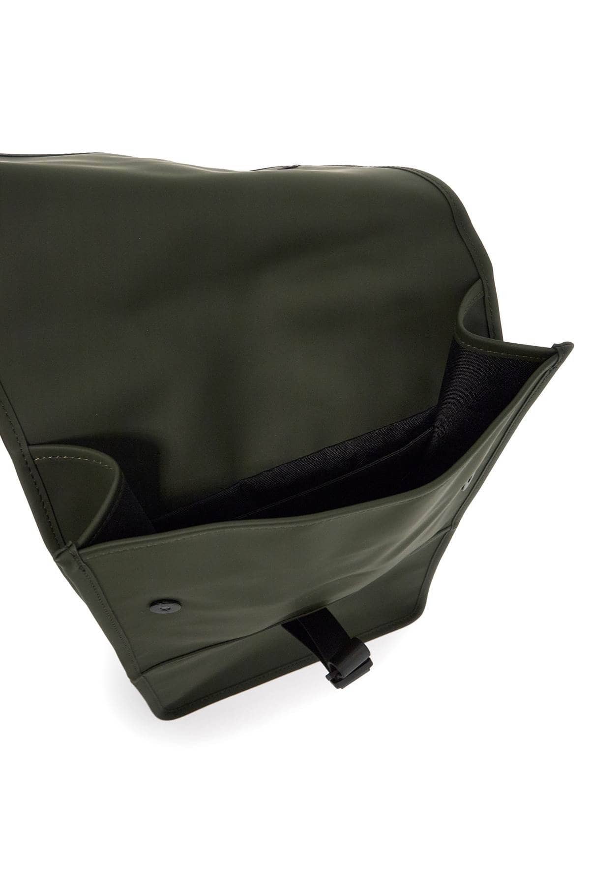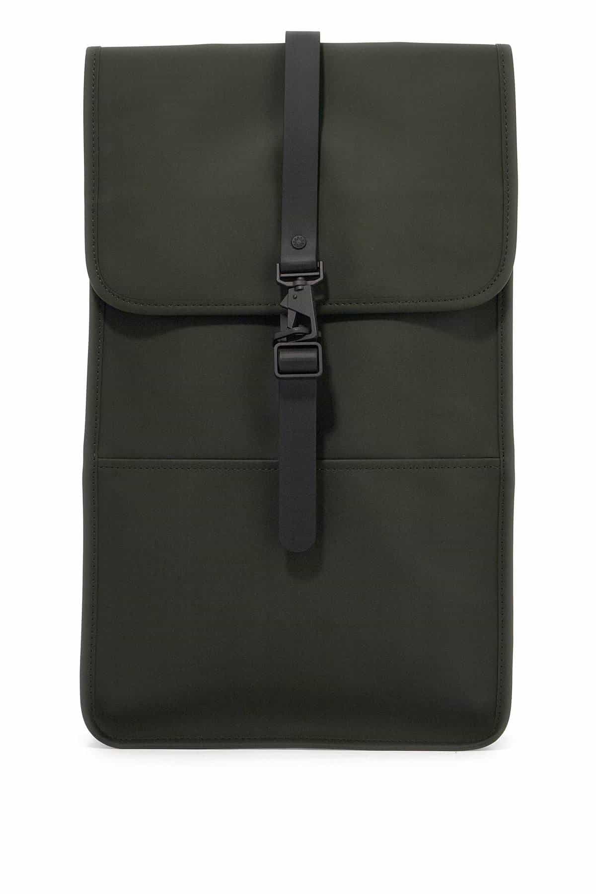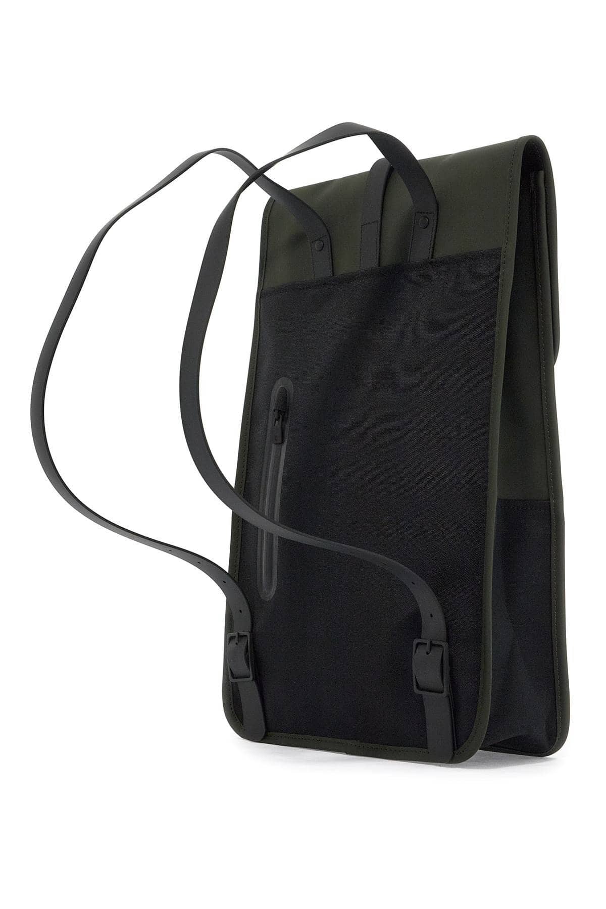 The RAINS backpack is made from the iconic waterproof PU fabric and features a simple yet refined design, characterized by its padded look and central strap with carabiner closure. It has a magnetic flap, a main compartment in mesh with a zip pocket and a 15” laptop pocket, a back zip pocket, and adjustable shoulder straps. The metal accessories have a burnished finish.
