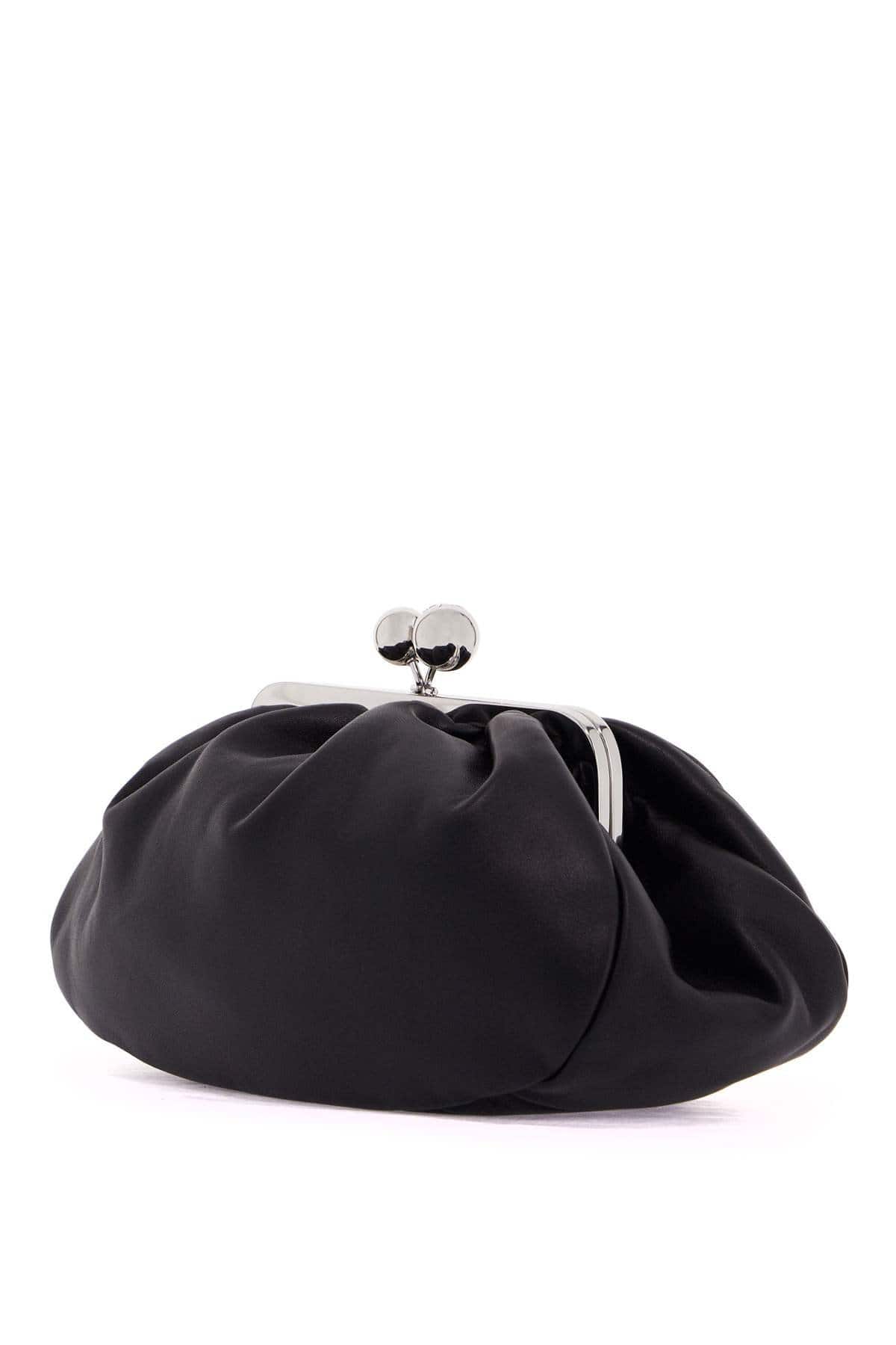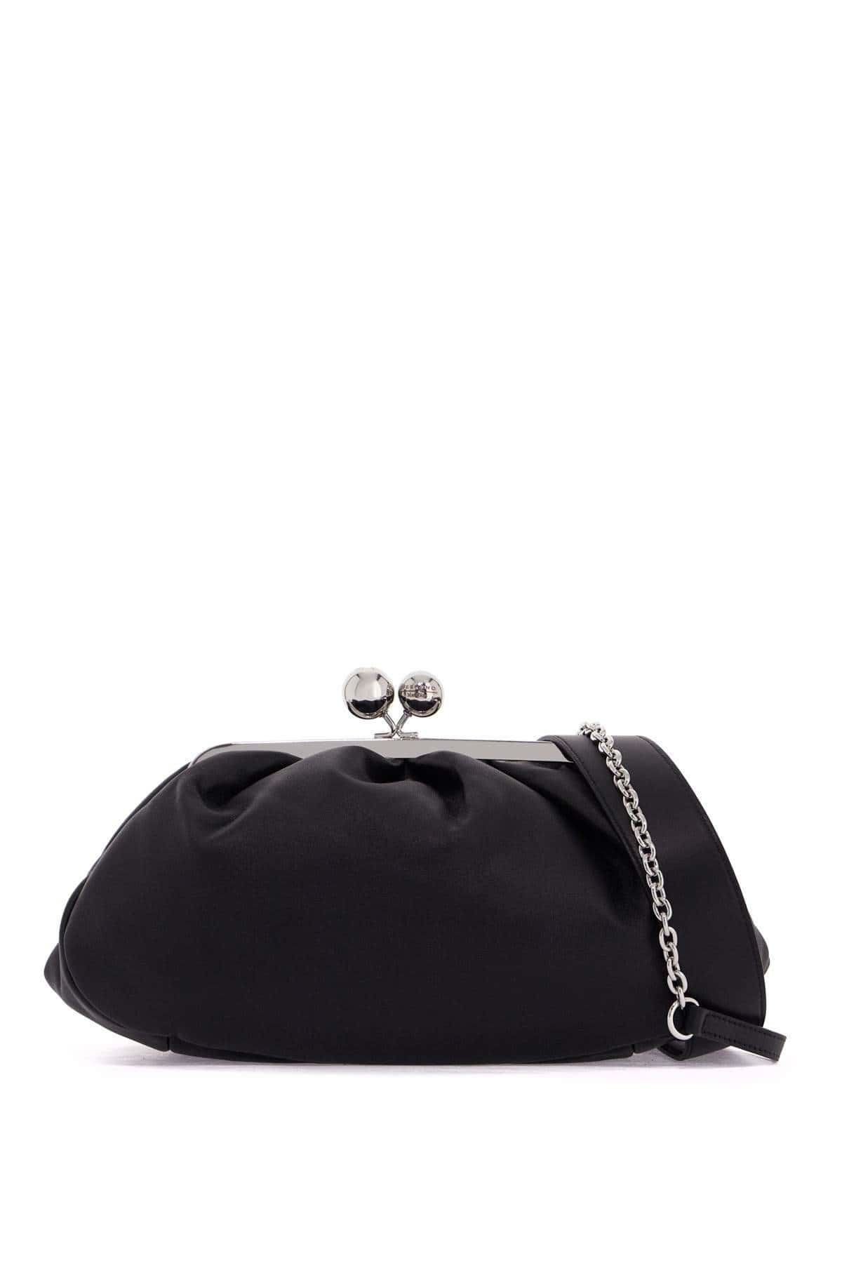 The Pasticcino clutch by Max Mara Weekend is made of soft nappa leather and features a kiss lock closure with large spheres. It also comes with a removable chain shoulder strap with a central leather insert, as well as an additional leather shoulder strap. The interior is lined with striped twill fabric. All metal accessories have a silver finish.