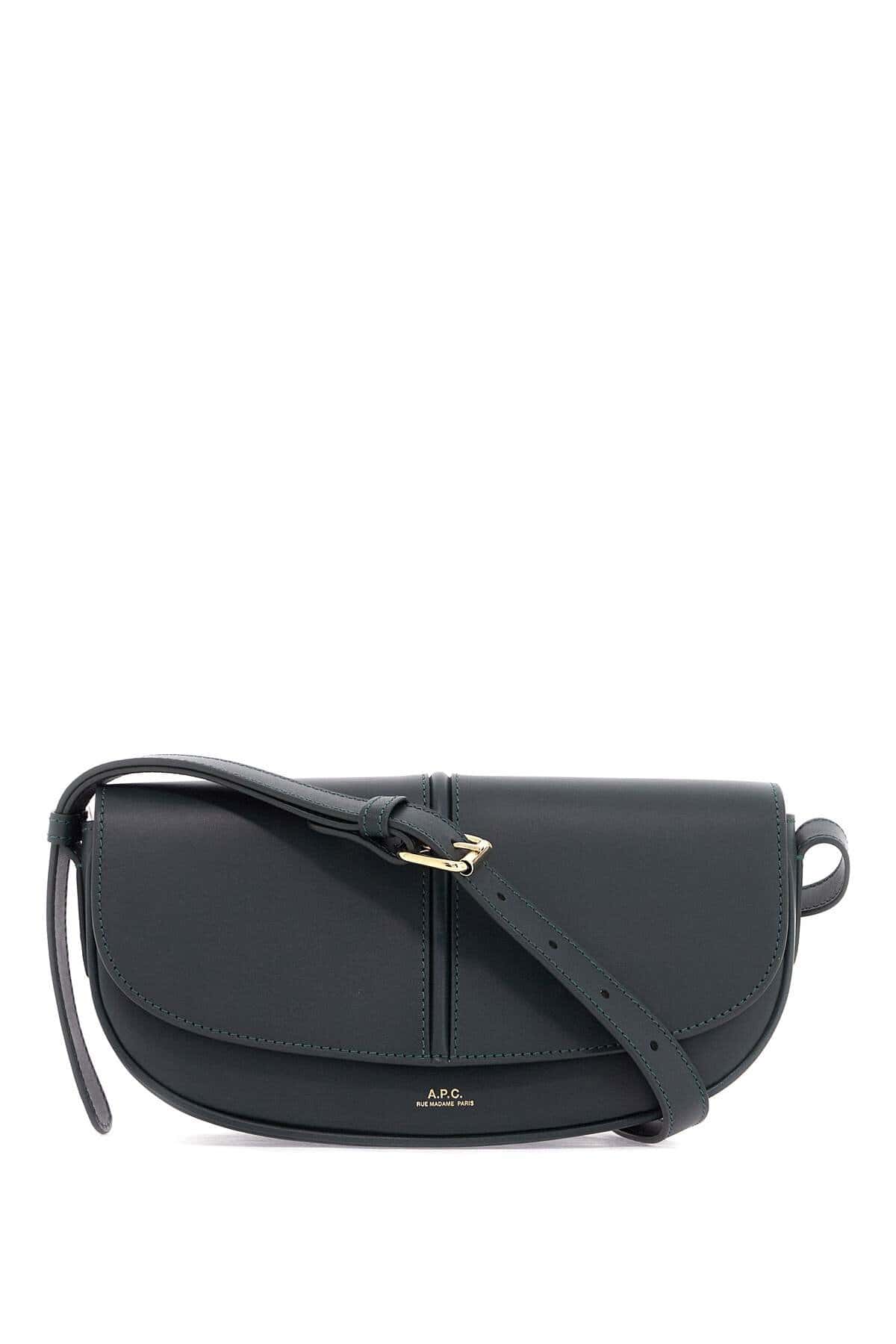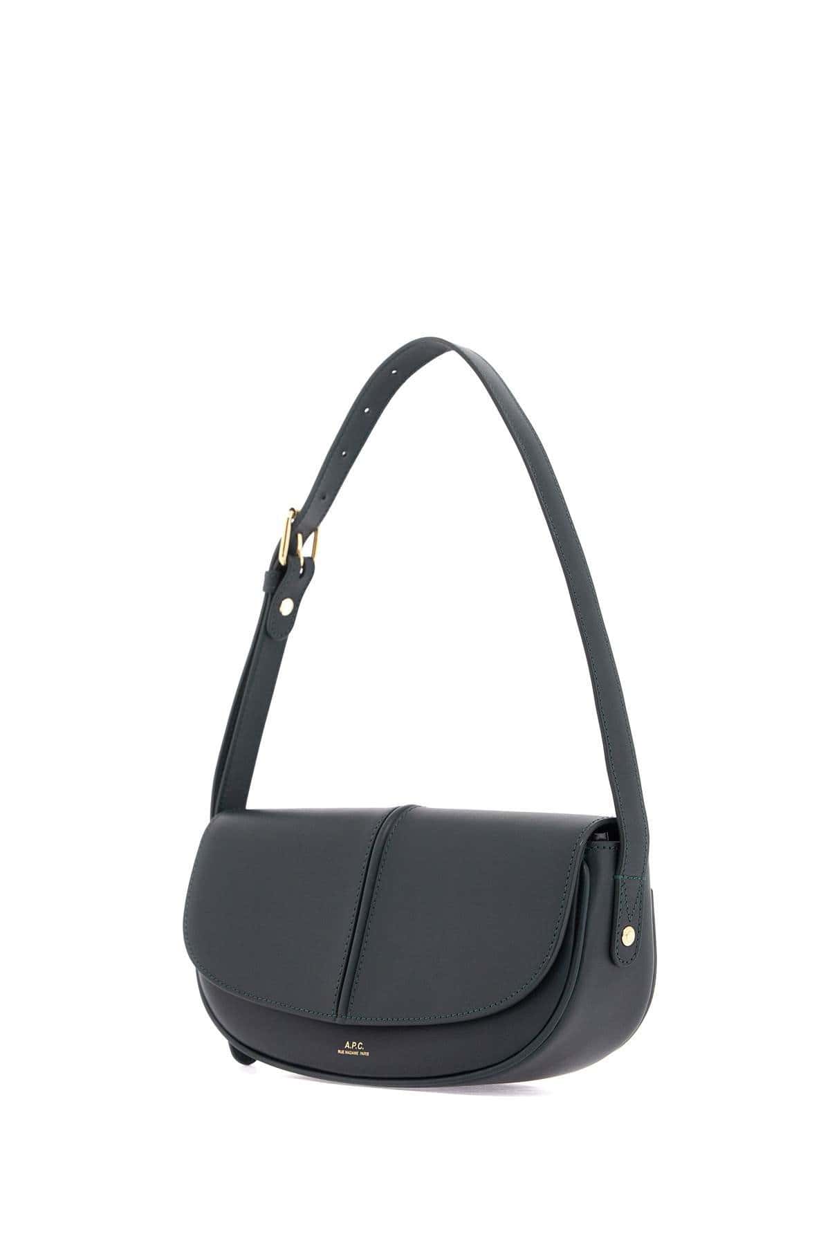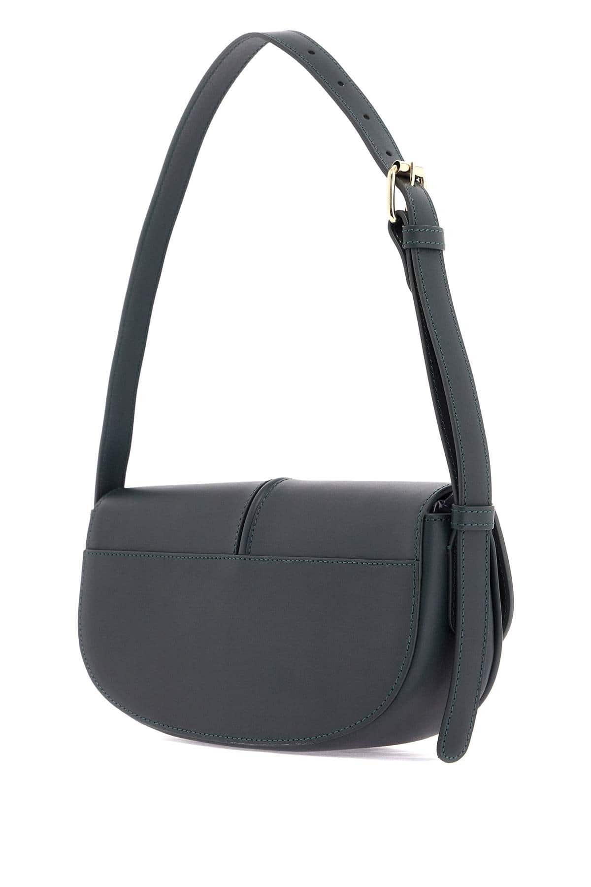 Betty shoulder bag by A.P.C. made of smooth leather with center piping on the flap. Magnetic closure, cotton-lined interior with one open pocket, adjustable leather handle. Finished with gold-tone printed lettering logo at front. Gold-finished metalware.