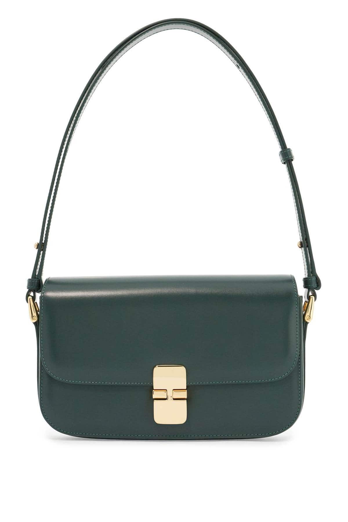 Grace Baguette bag by A.P.C. crafted in smooth leatherfeaturing flap with metal joint closure, gold-tone logo print on the back and adjustable shoulder strap to wear on the shoulder or crossbody. Cotton lining and one inner open flat pocket. Gold-finished metalware.