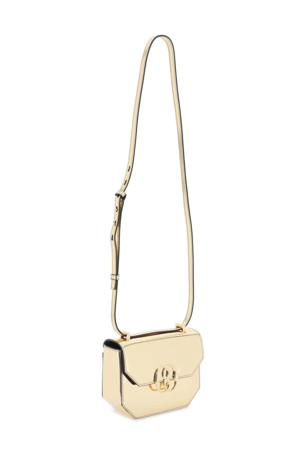 Bally mirror-effect patent leather crossbody bag with tone-on-tone Bally Emblem applied to the flap. Magnetic closure, smooth and suede leather interior with one open pocket and additional slit pocket on back. Adjustable and detachable shoulder strap and gold-finished metalware.