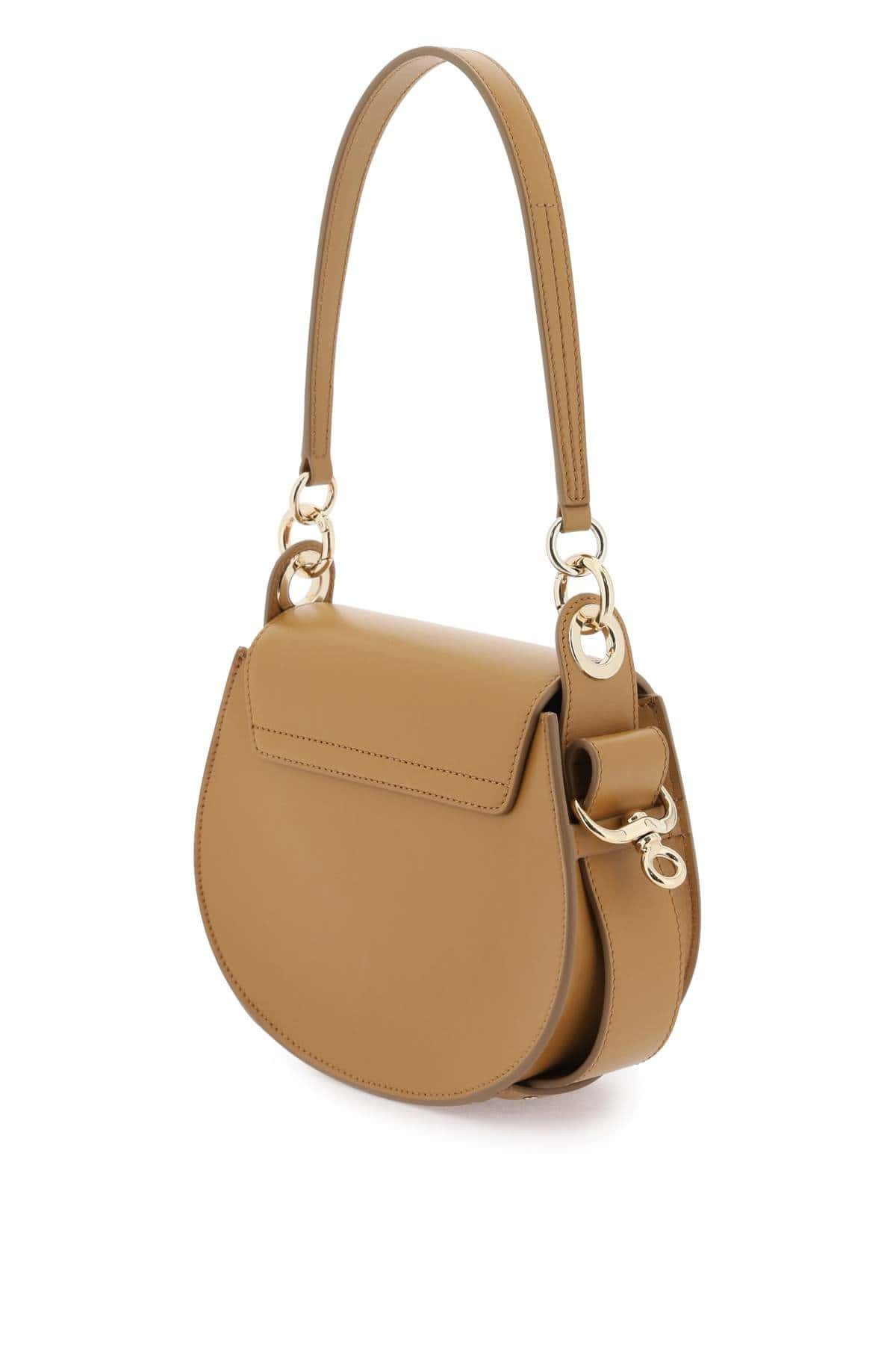 Tess small bag by Chloé crafted in smooth and suede leather and characterized by the front flap enriched with metal ring insert with engraved logo. Carriable with the detachable handle or with the adjustable and detachable shoulder strap. Front open pocket under the flap and main compartment with linen lining and a leather credit card pocket. Debossed logo on the flap, gold-finished metalware.