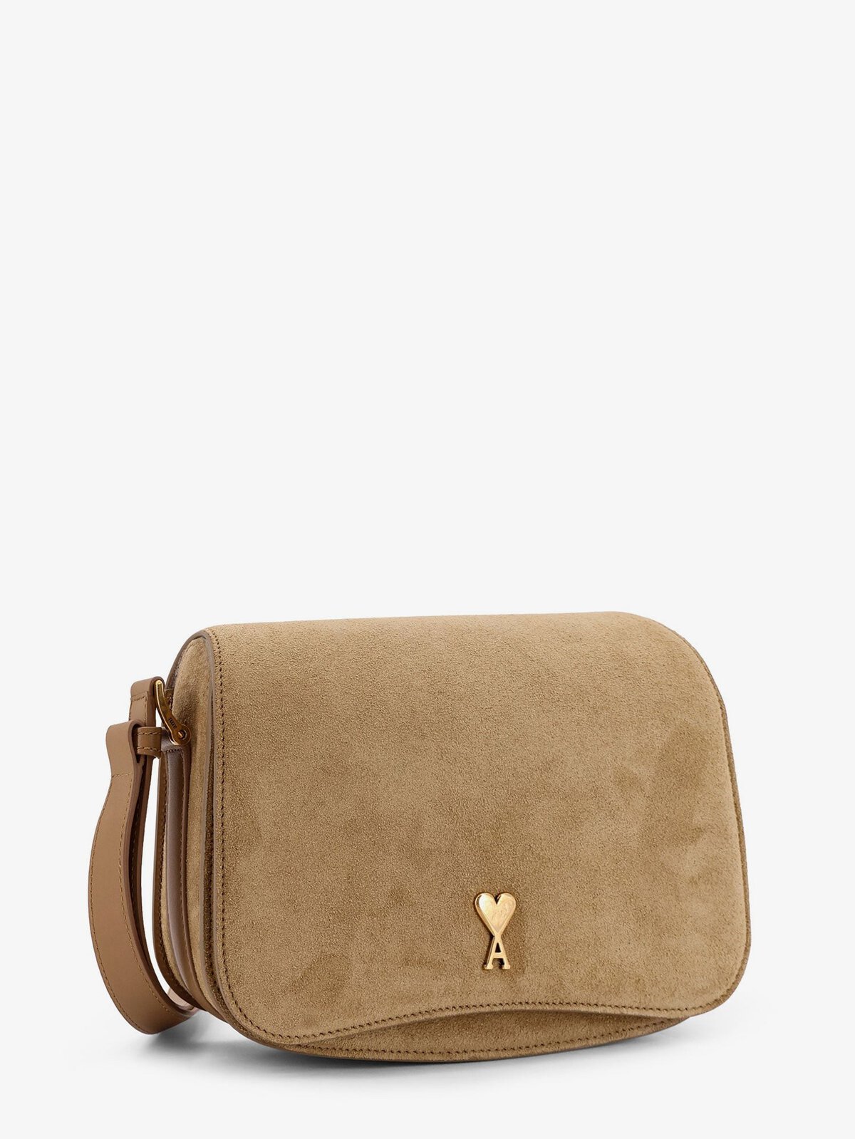 Ami Paris Suede Shoulder Bag With Metal Logo On The Front