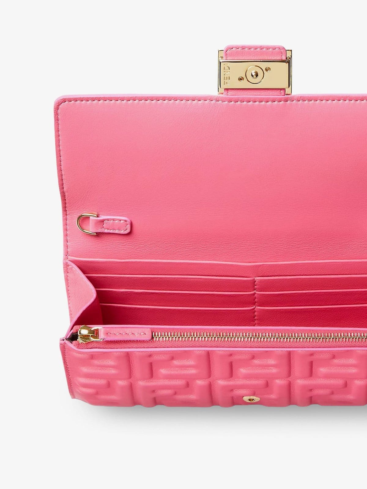Fendi Continental With Chain Baguette Leather Shoulder Bag With Embossed Ff Logo