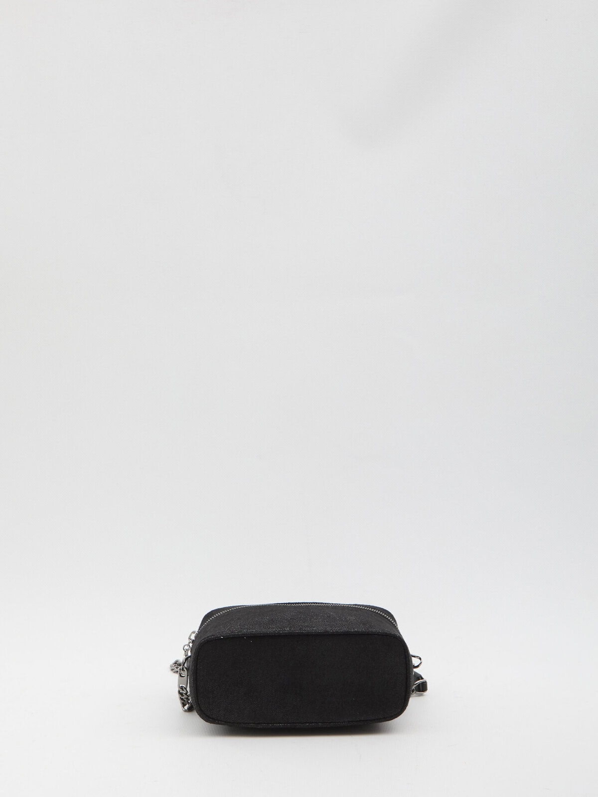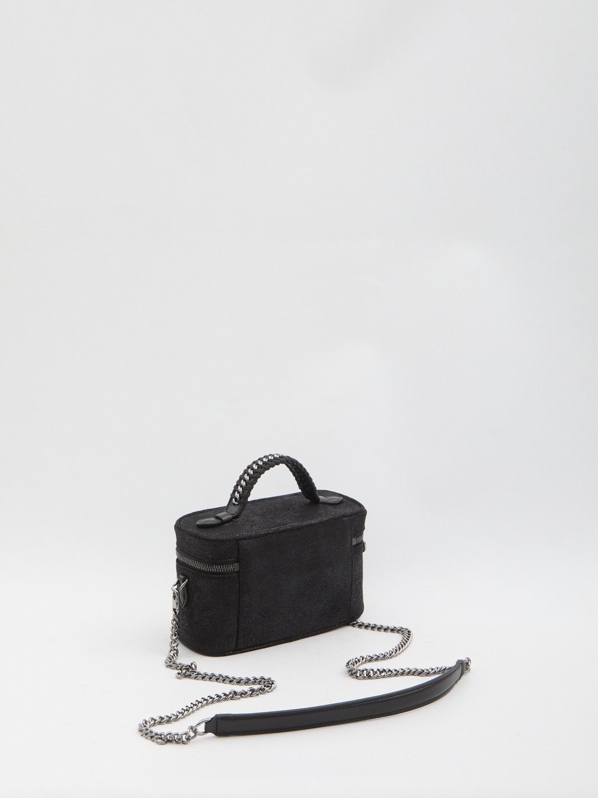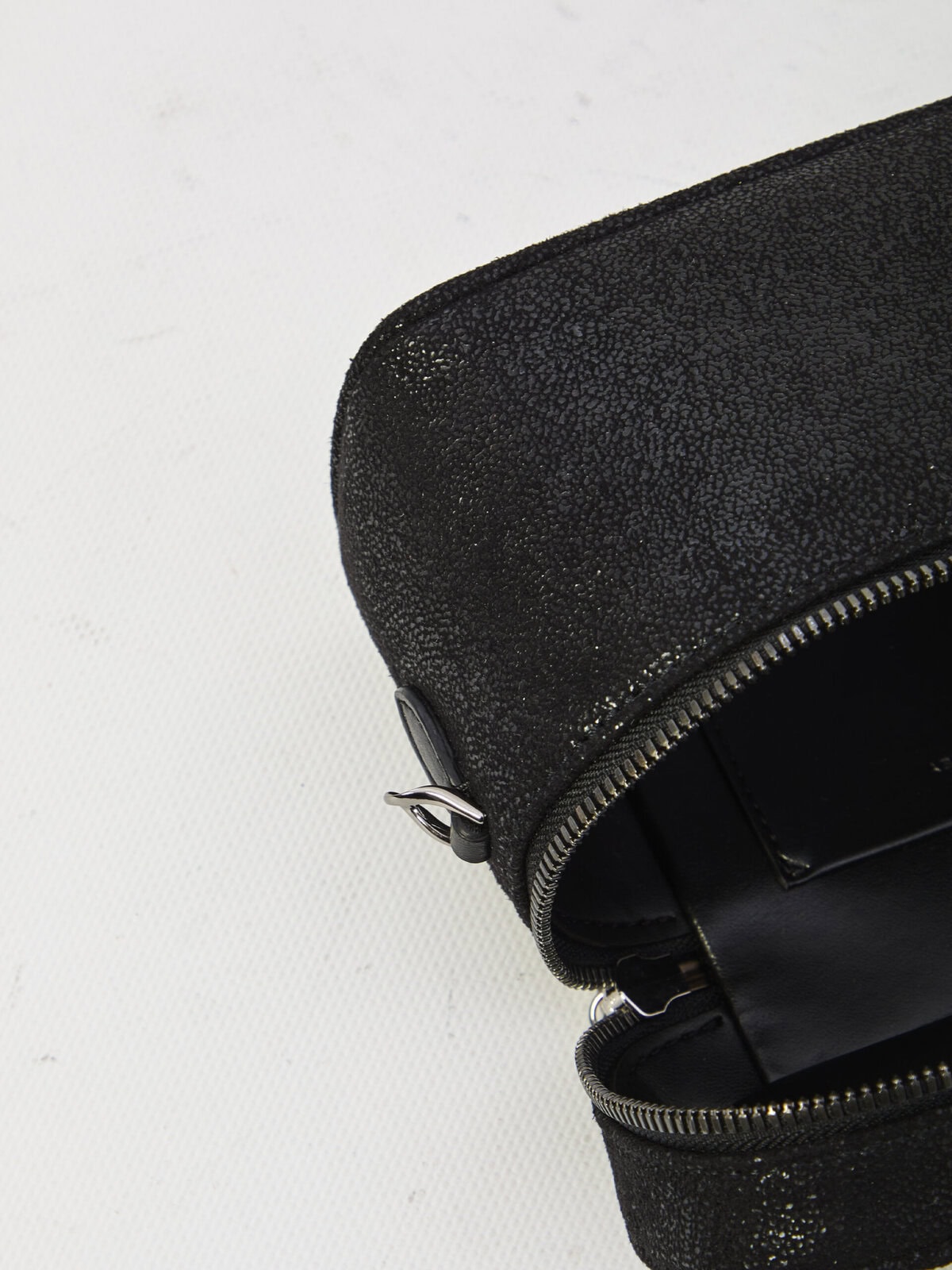 Shaggy Deer black suede fabric bag. Features a fixed top handle wrapped in organic cotton laces with a metal detail, a removable chain shoulder strap with a faux leather insert, double-zip closure, one main compartment with a flat pocket. Faux leather lining. Dustbag included.