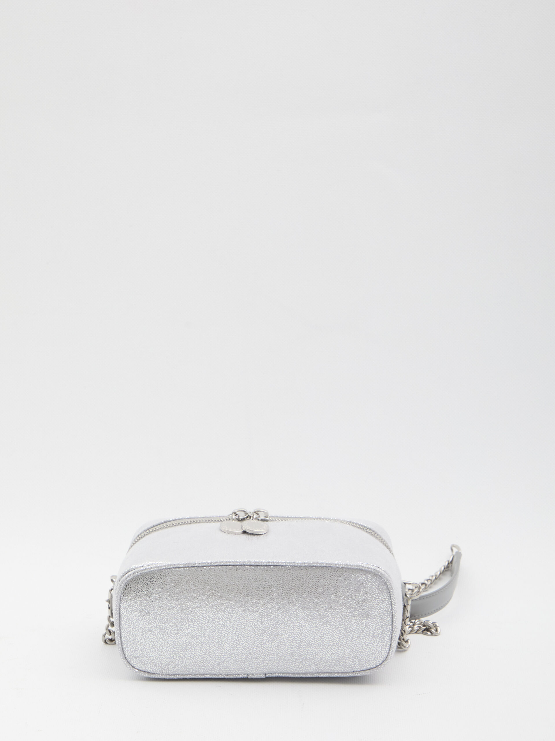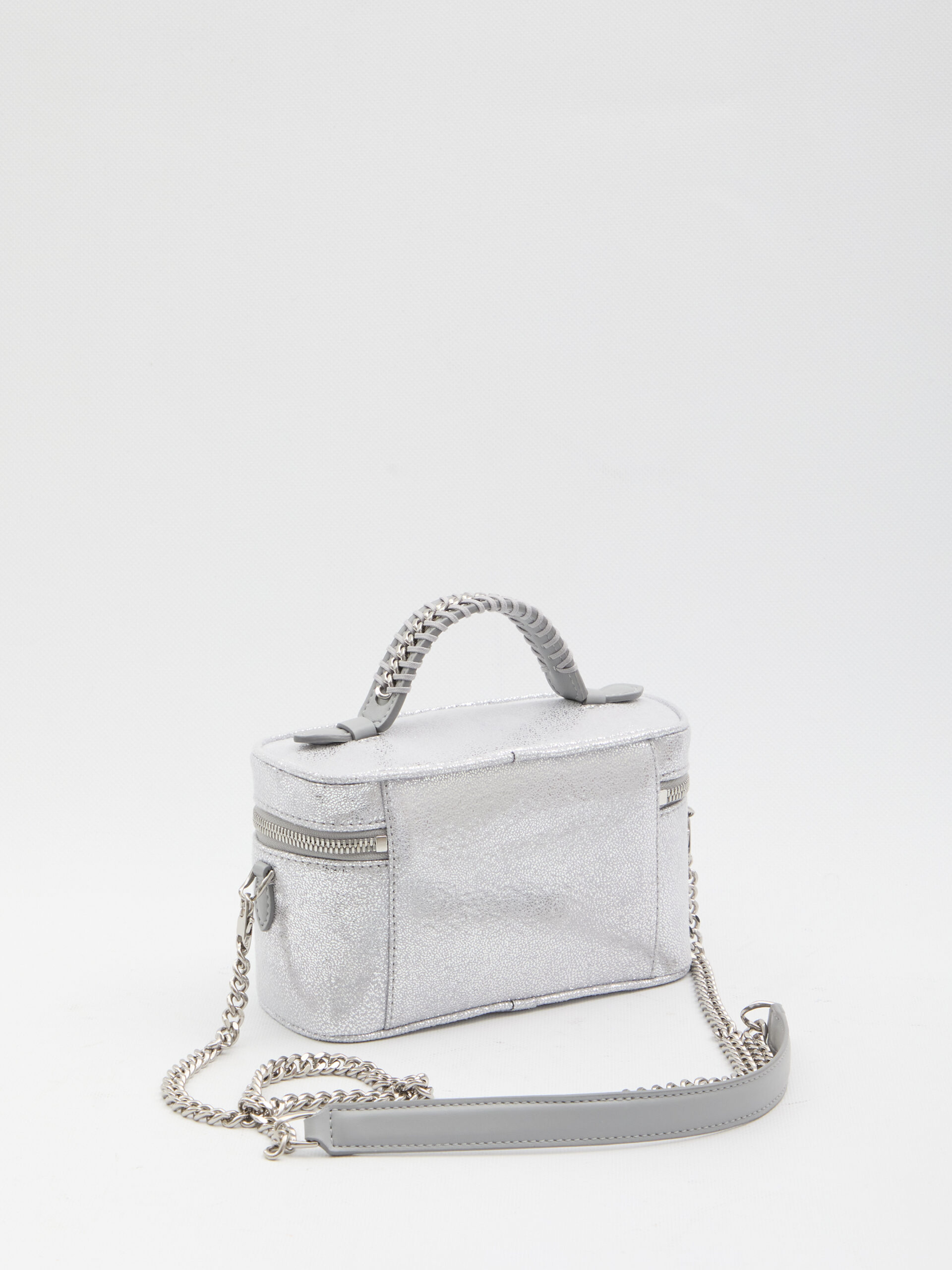 Features a fixed top handle wrapped in organic cotton laces, a palladium-colored chain shoulder strap with a removable faux leather insert, double-slider zip closure, a main compartment with a flat pocket. Lining in faux leather. Dustbag included.