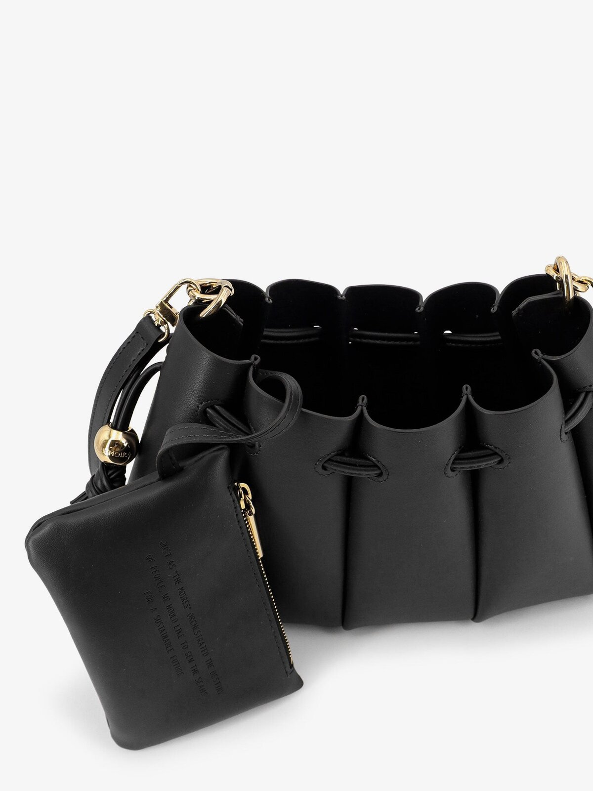 Adjustable drawstring closure with gold metal details