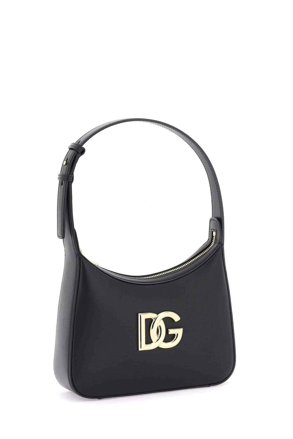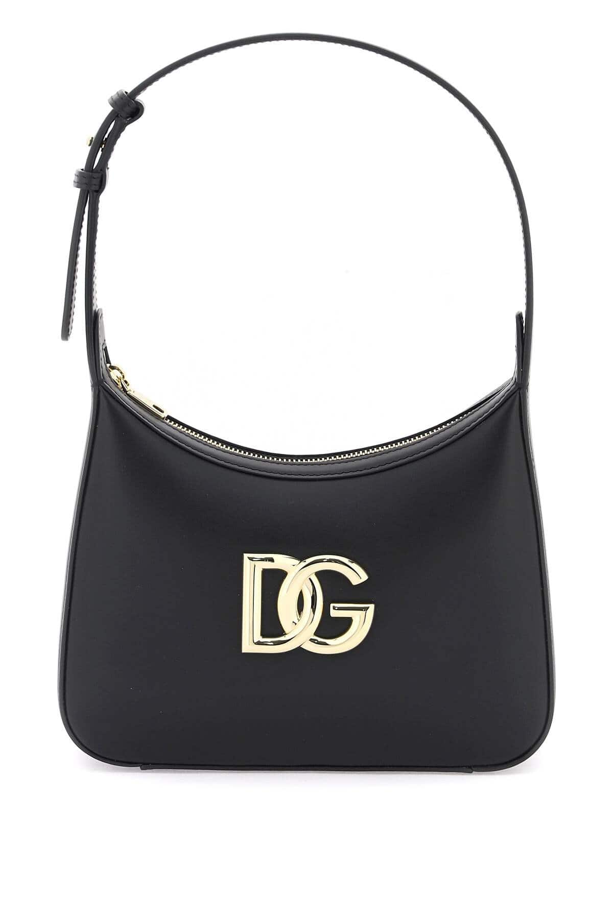 3.5 shoulder bag by Dolce & Gabbana crafted in smooth leather featuring metal DG logo at front. Top zip closure, leather-lined interior with a flat pocket, adjustable single handle. Gold-finished metalware.