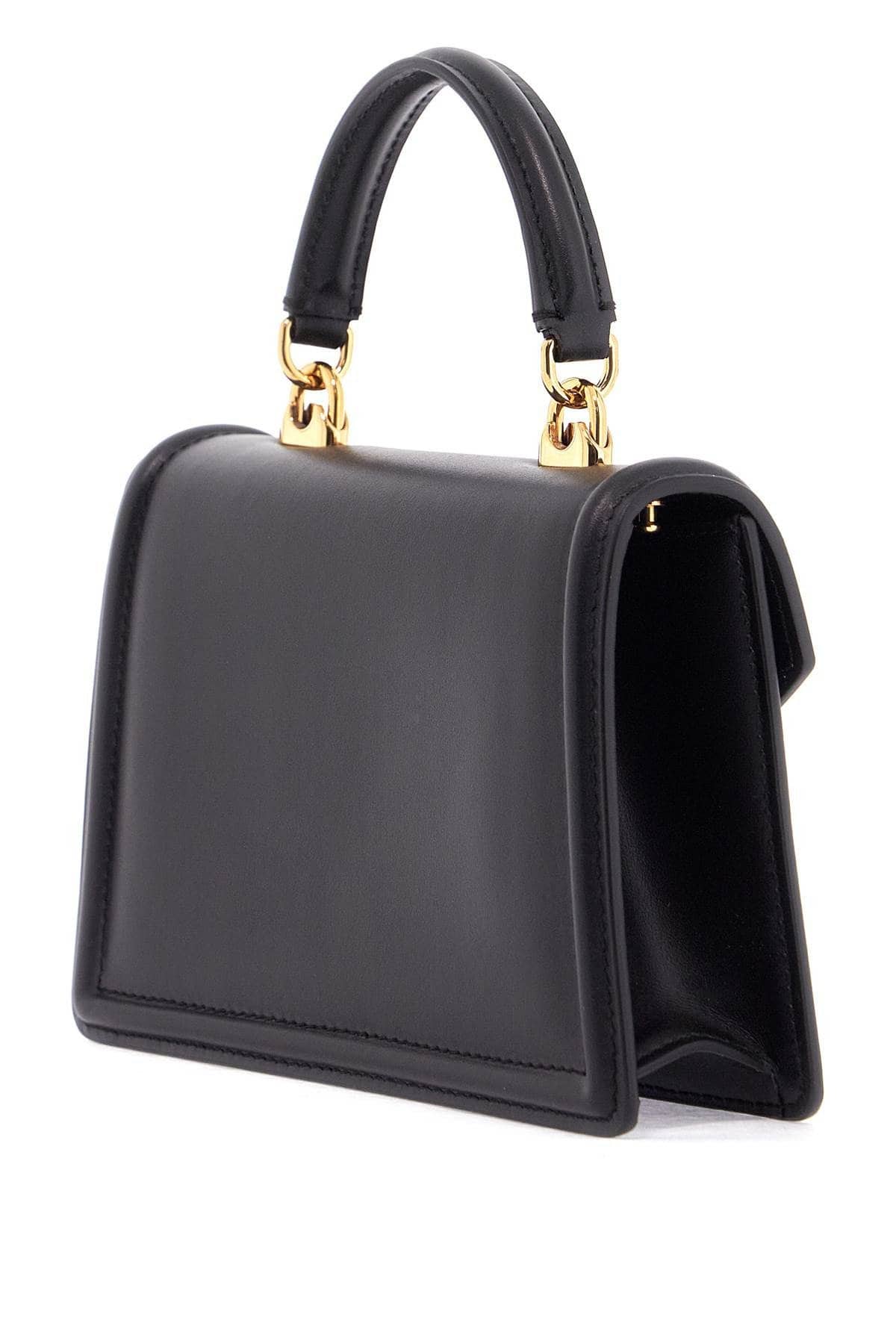 Dolce & Gabbana Black Calfskin Shoulder Bag With Rhinestone Details And Gold Chain