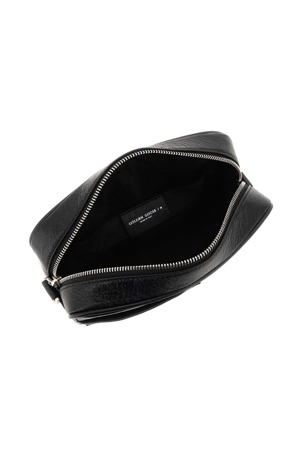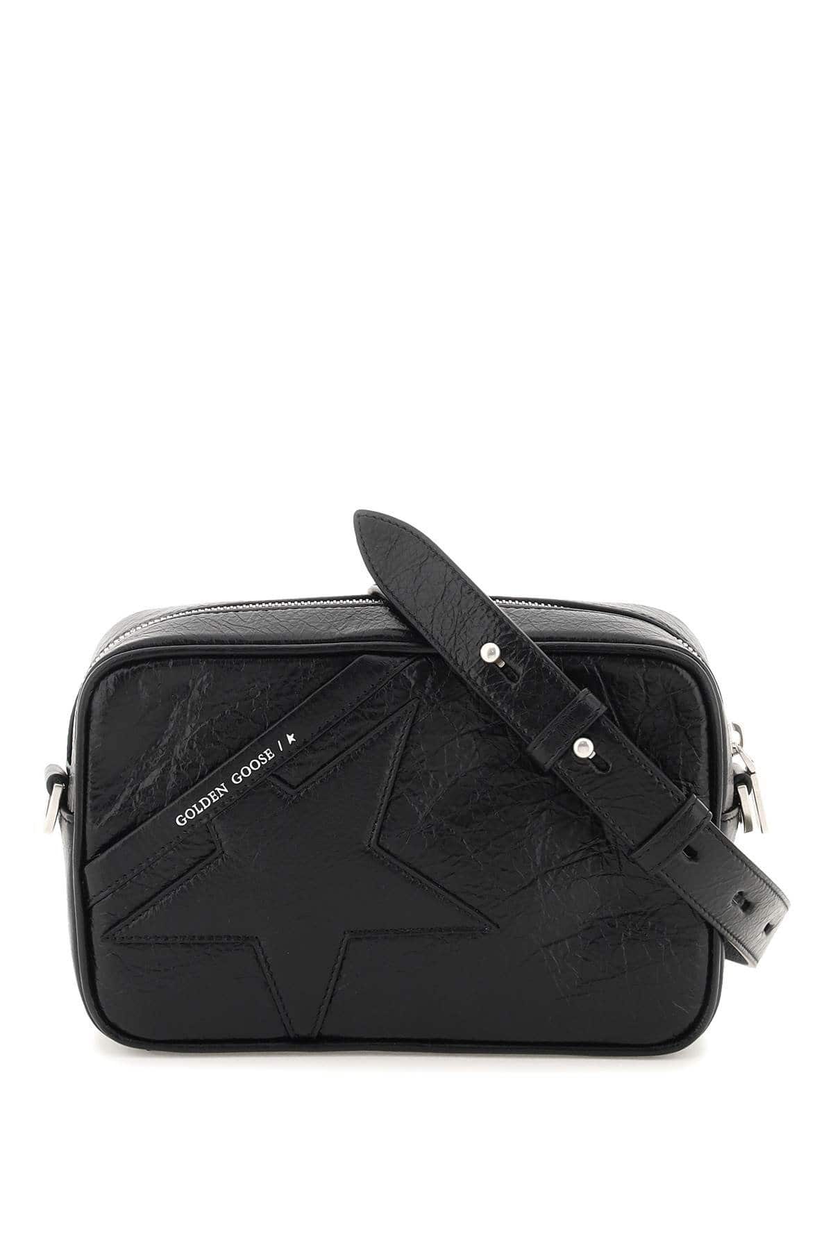 Golden Goose “Star Bag” bag in crinkled-effect leather, characterized by the the iconic tone-on-tone star on front. Removable adjustable shoulder strap, zip closure and front slanted pocket with silver-tone logo print. Branded fabric lining and one inner open flat pocket. Silver-finished metalware.