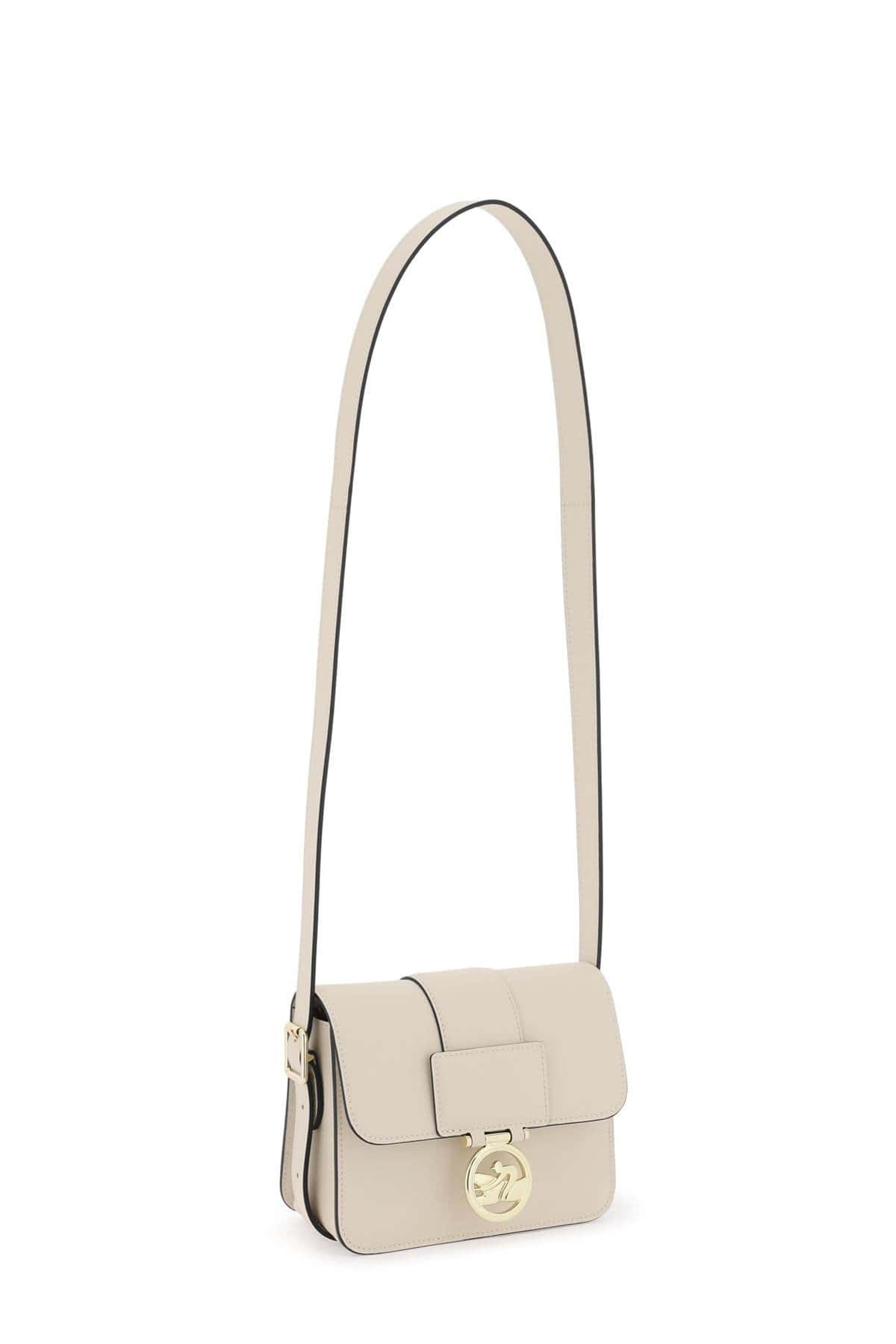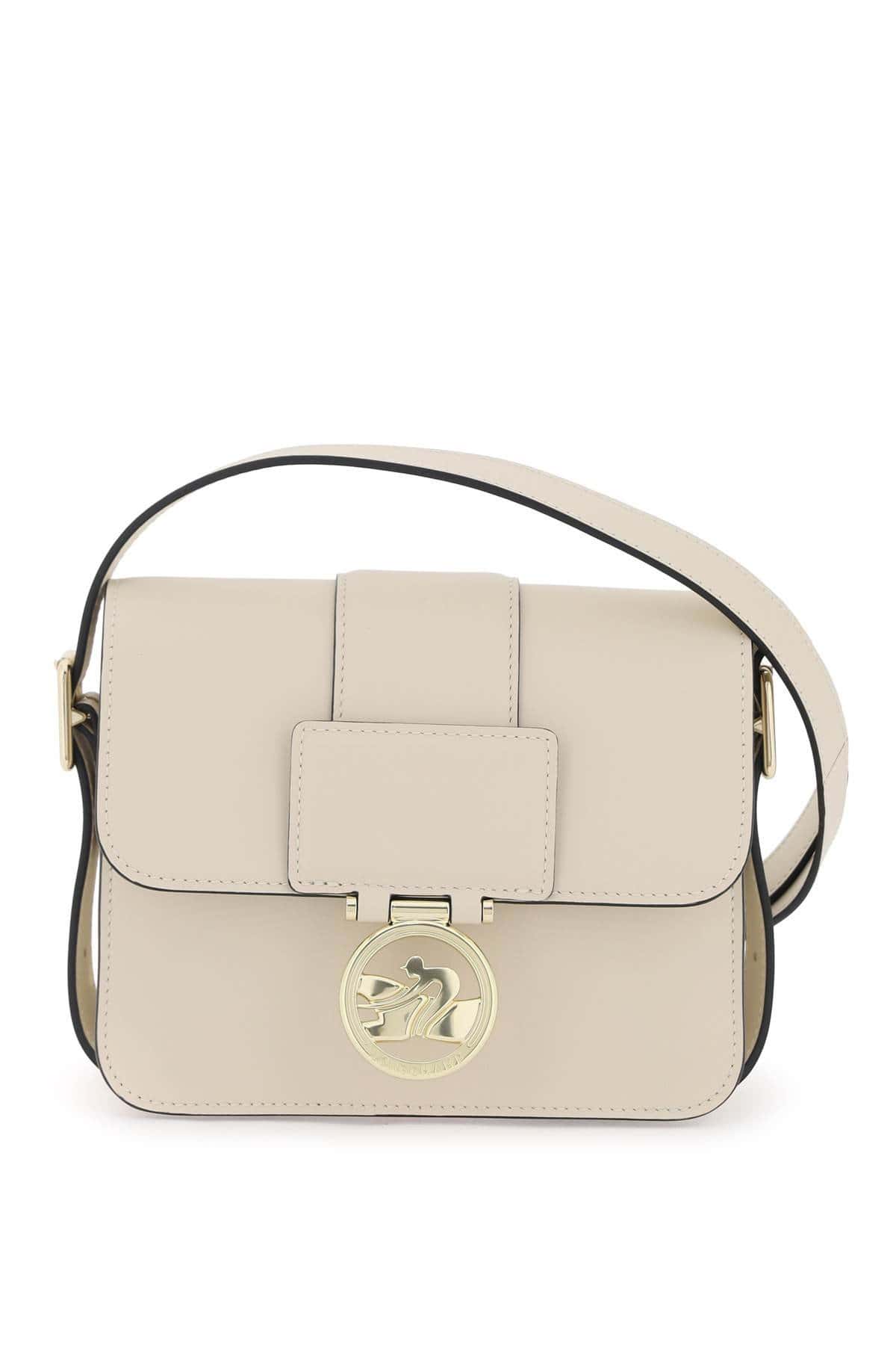Small Box-Trot bag by Longchamp in smooth calf leather, characterized by the front flap embellished with metal horseman medal with engraved lettering logo. Adjustable shoulder strap with buckles on both sides, magnetic button closure, suede leather lining and one inner zippered flat pocket. Palladium-finished metalware.