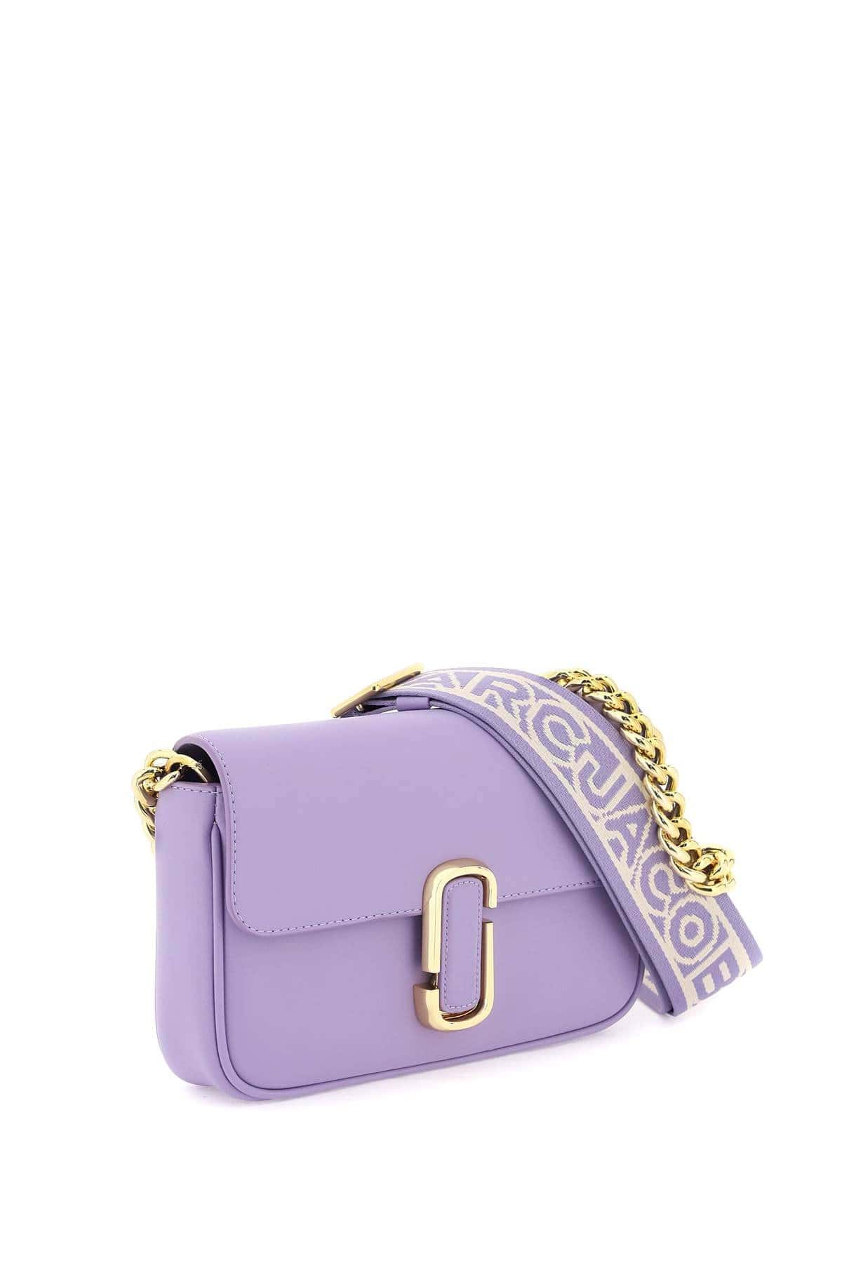 Marc Jacobs smooth leather shoulder bag characterized by the flap with magnetic closure enriched with the iconic metal Double J monogram. Chain handle to carry on the shoulder or by hand and detachable and adjustable fabric shoulder strap with jacquard logo and leather details. Rear slit pocket, fabric-lined interior with one inner zipped flat pocket and a slit pocket under the flap. Gold-finished metalware.