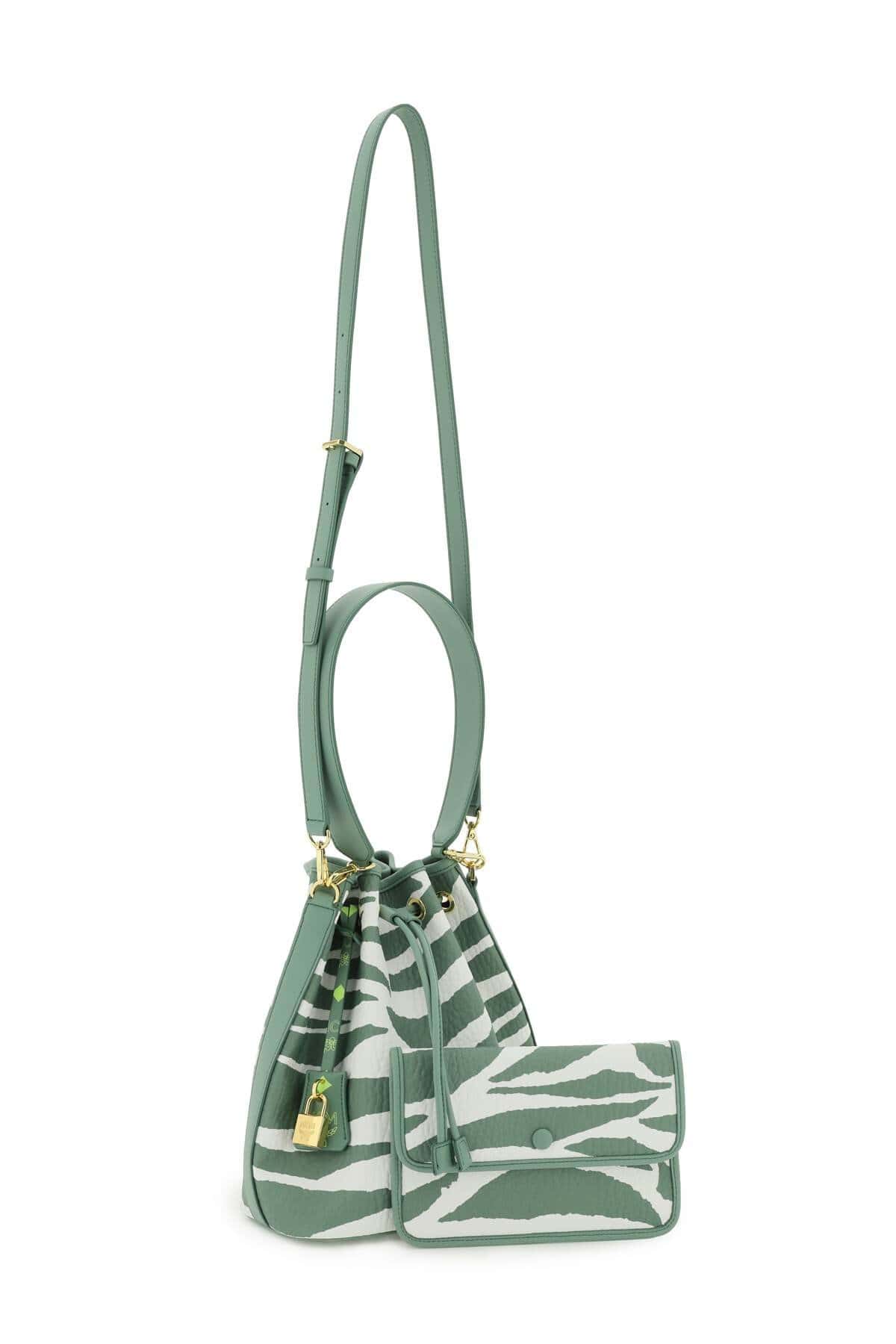MCM bucket bag in Meta Safari hammered leather-effect coated canvas with all-over zebra motif and faux-leather inserts. Drawstring closure, suede-effect microfiber-lined interior with one open flat pocket, logo tag and detachable matching pouch. It can be worn over the shoulder using the removable top handle or across the body using the adjustable detachable strap. Protective studs, gold-tone metalware.