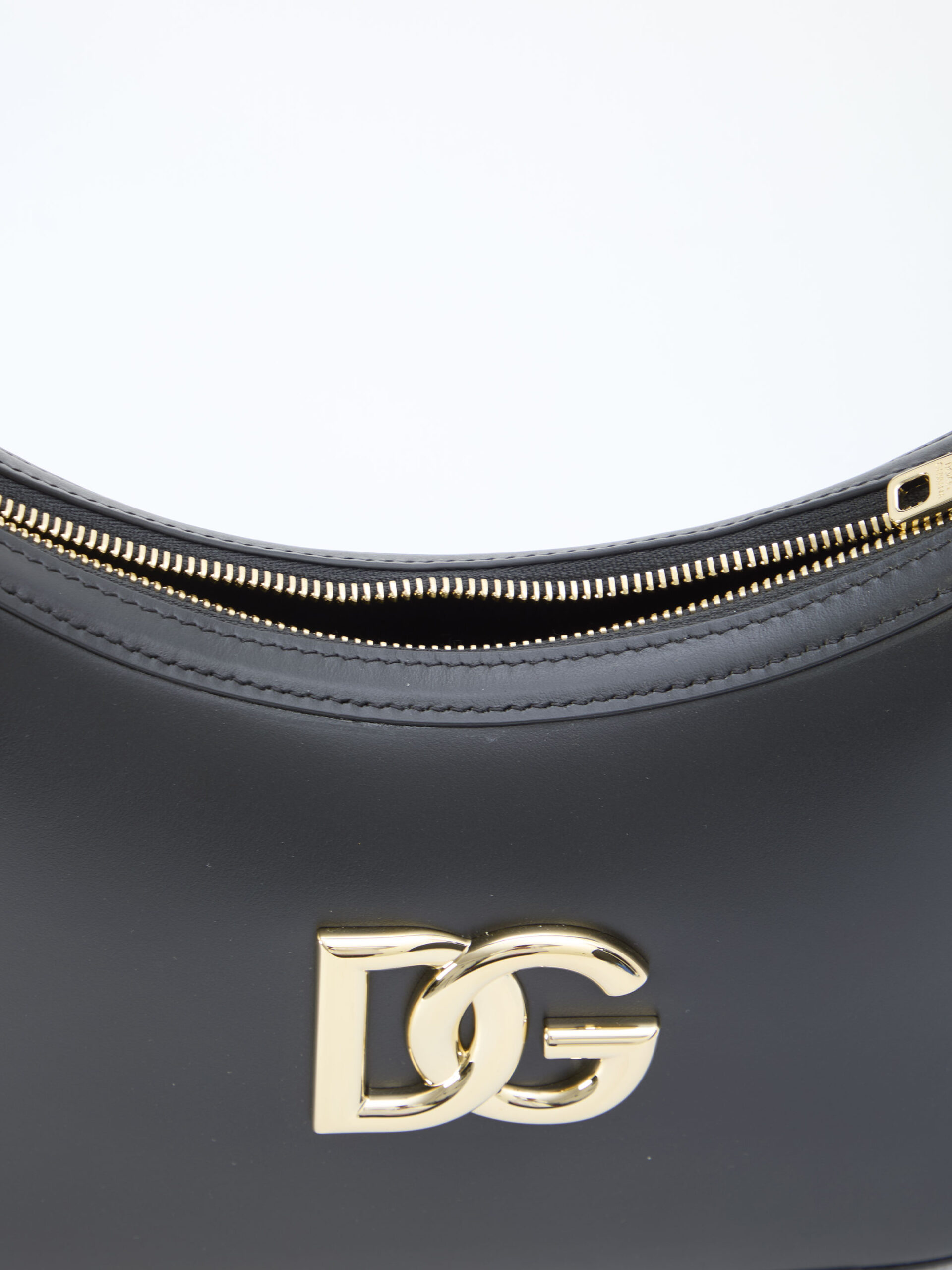 3.5 shoulder bag in black calfskin with gold-tone metal DG logo on the front. It features adjustable top handle, zip closure, one main interior compartment and one interior flat pocket. Dust bag included. Any leather imperfections are not to be considered manufacturing defects, but a peculiarity of the material.