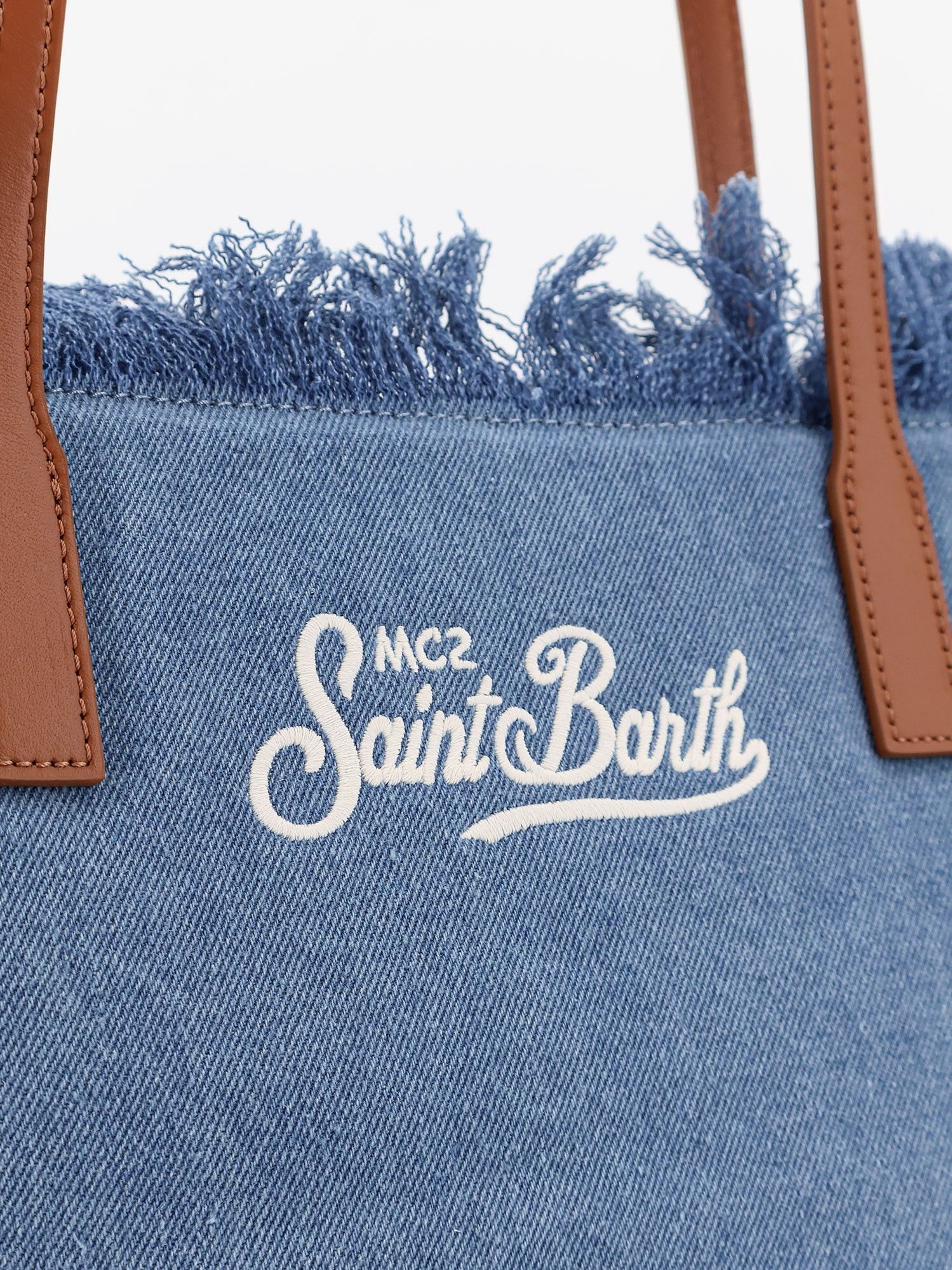 Mc2 Saint Barth City Bag Denim Shoulder Bag With Front Embroidered Logo