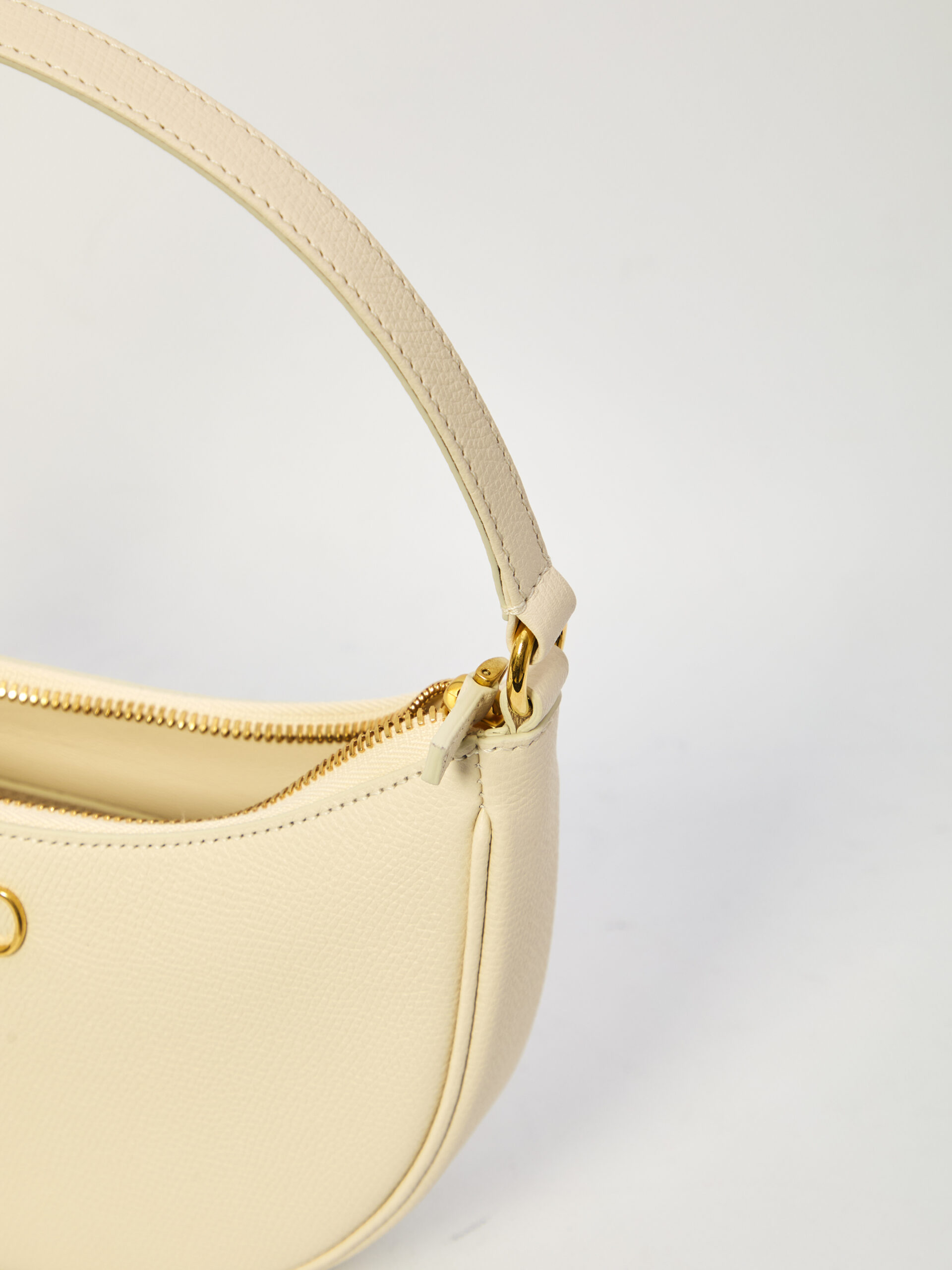 Bag in soft light ivory grained calf leather. It features an adjustable top handle, antique gold-tone metal VLogo Signature on the front, zip closure, one main compartment, one internal flat pocket, and leather lining. Dustbag included. Any imperfections in the leather are not to be considered manufacturing defects, but rather a characteristic of the material.