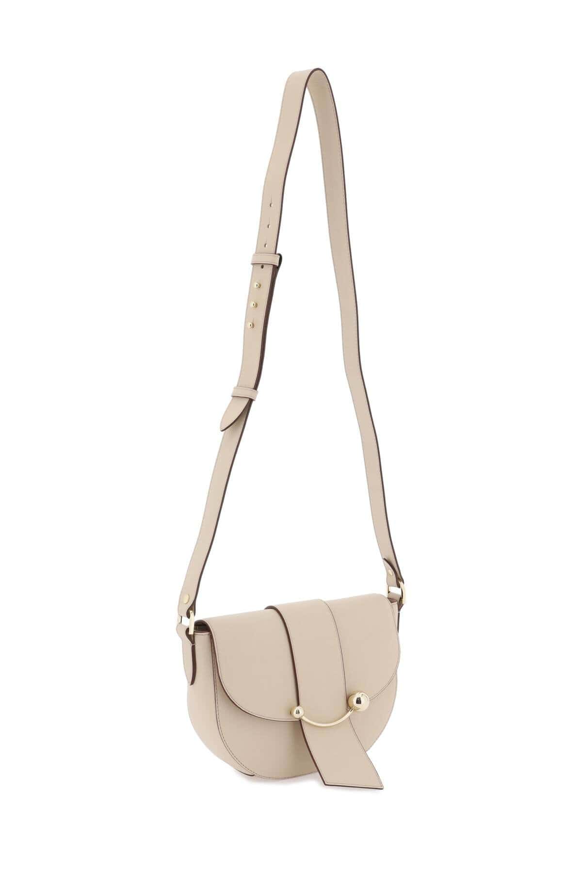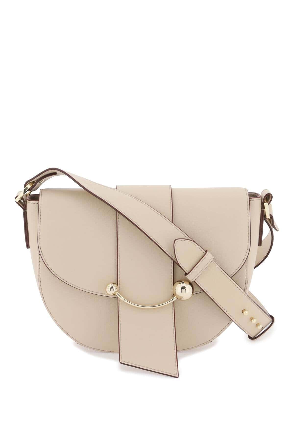 Strathberry “Crescent” crescent bag crafted in leather and featuring the iconic metal bar applied to the flap. Magnetic closure, suede interior with one open pocket, adjustable shoulder strap and gold-finished metalware.