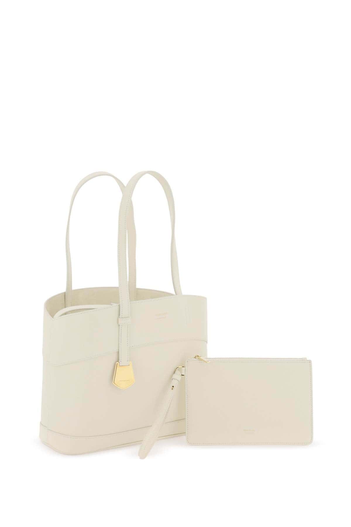 Charming leather tote bag by FERRAGAMO with rounded edge and gold lettering logo. Adjustable pin closure, suede interior with a removable pouch and gold metal branded charm.