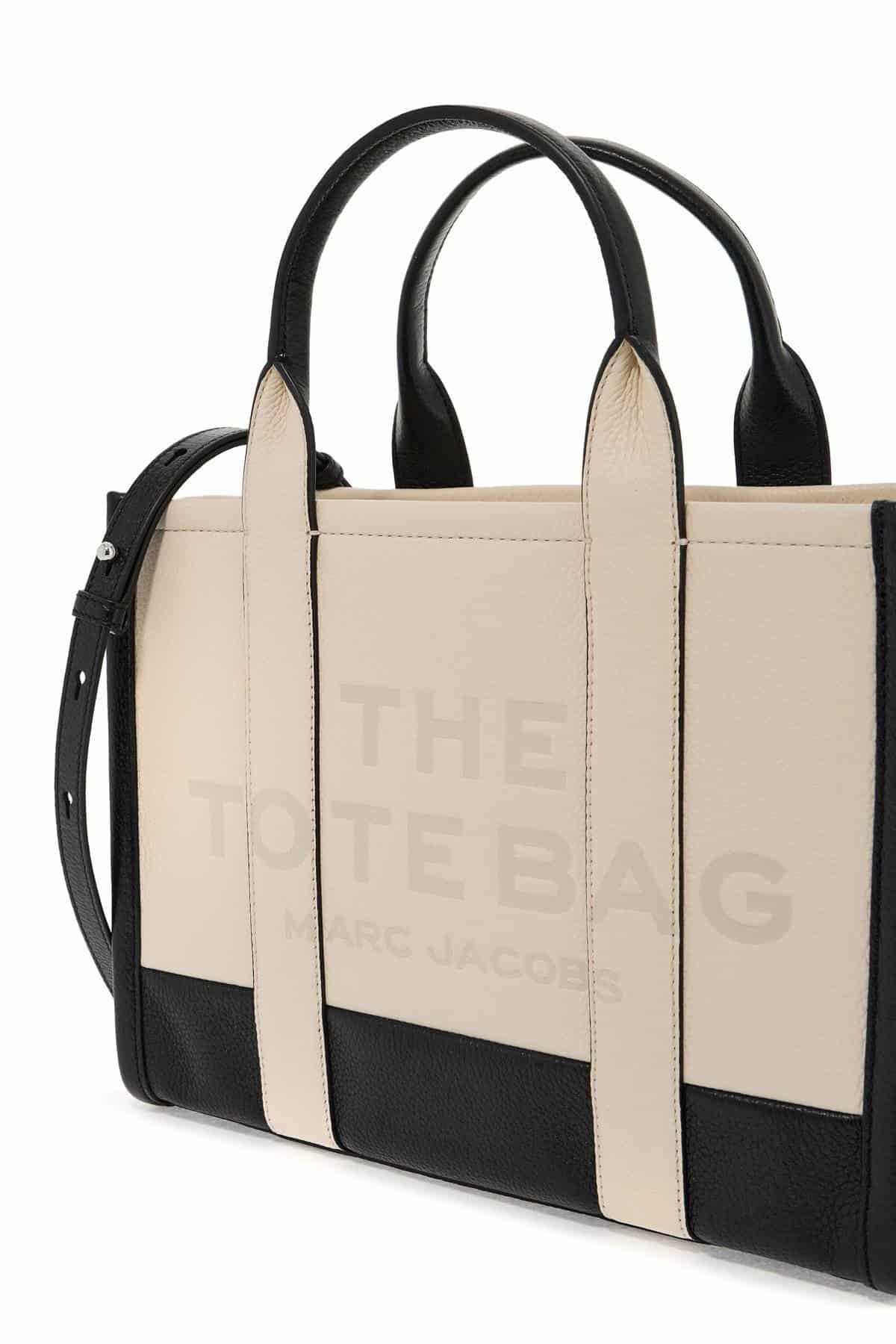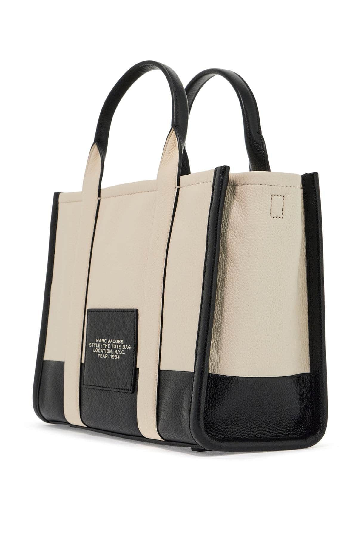 Marc Jacobs “The Colorblock Medium Tote Bag” crafted in two-tone full grain leather with debossed logo on front and leather logo patch on the back. Double top handle, detachable and adjustable shoulder strap, side handle and zip closure. Fabric-lined interior featuring a zippered pocket and two open ones. Silver-finished metalware.