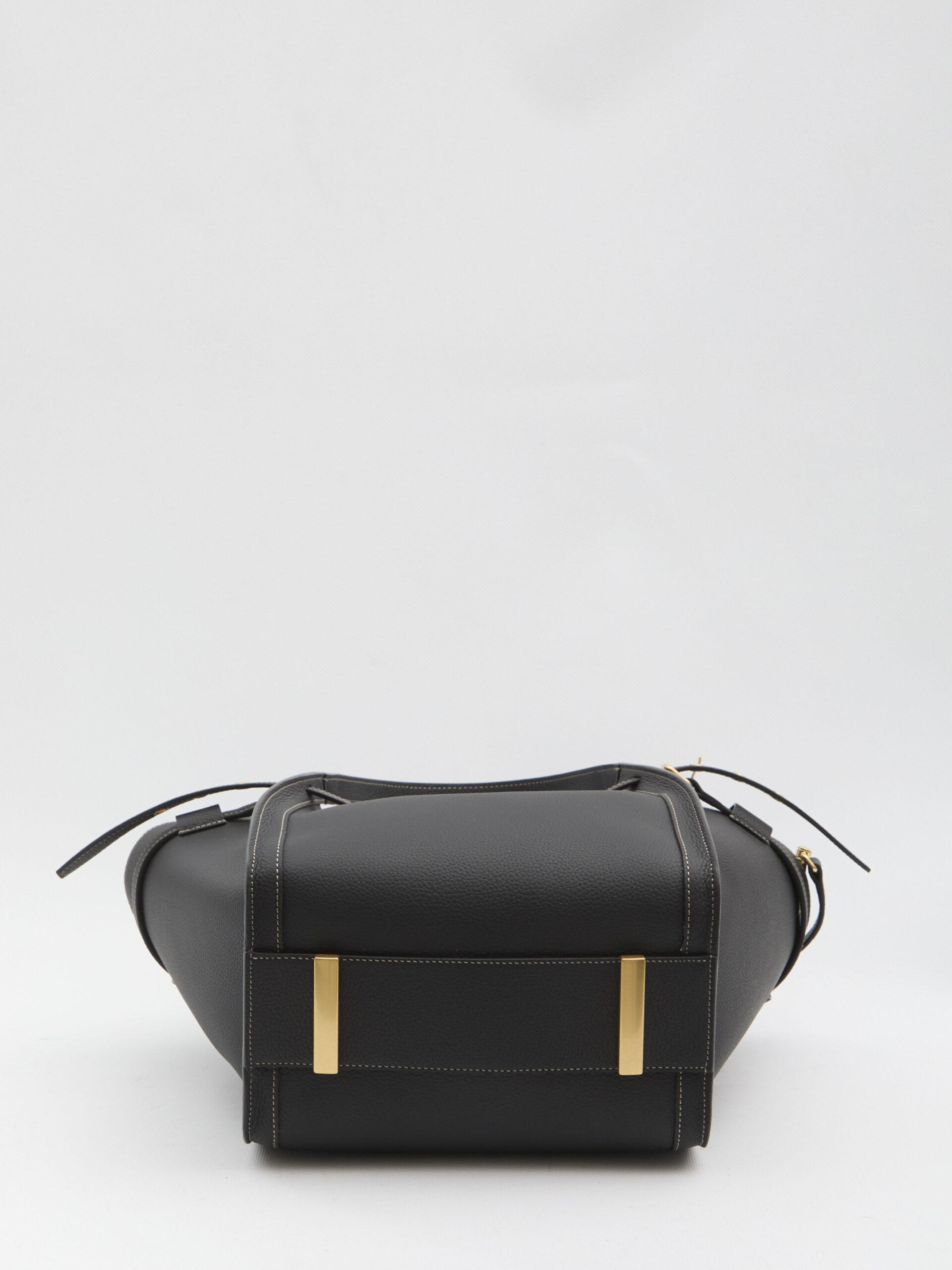 Black grained calf leather bag. It features two top handles, an adjustable and removable shoulder strap, an adjustable external strap, a custom metal T Timeless accessory, metal feet, a hook closure with the Tod’s signature embossed, snap buttons to adjust the silhouette, one main compartment, an internal zip pocket, and a suede leather lining. Dustbag included. Any imperfections in the leather should not be considered manufacturing defects but rather a characteristic of the material.