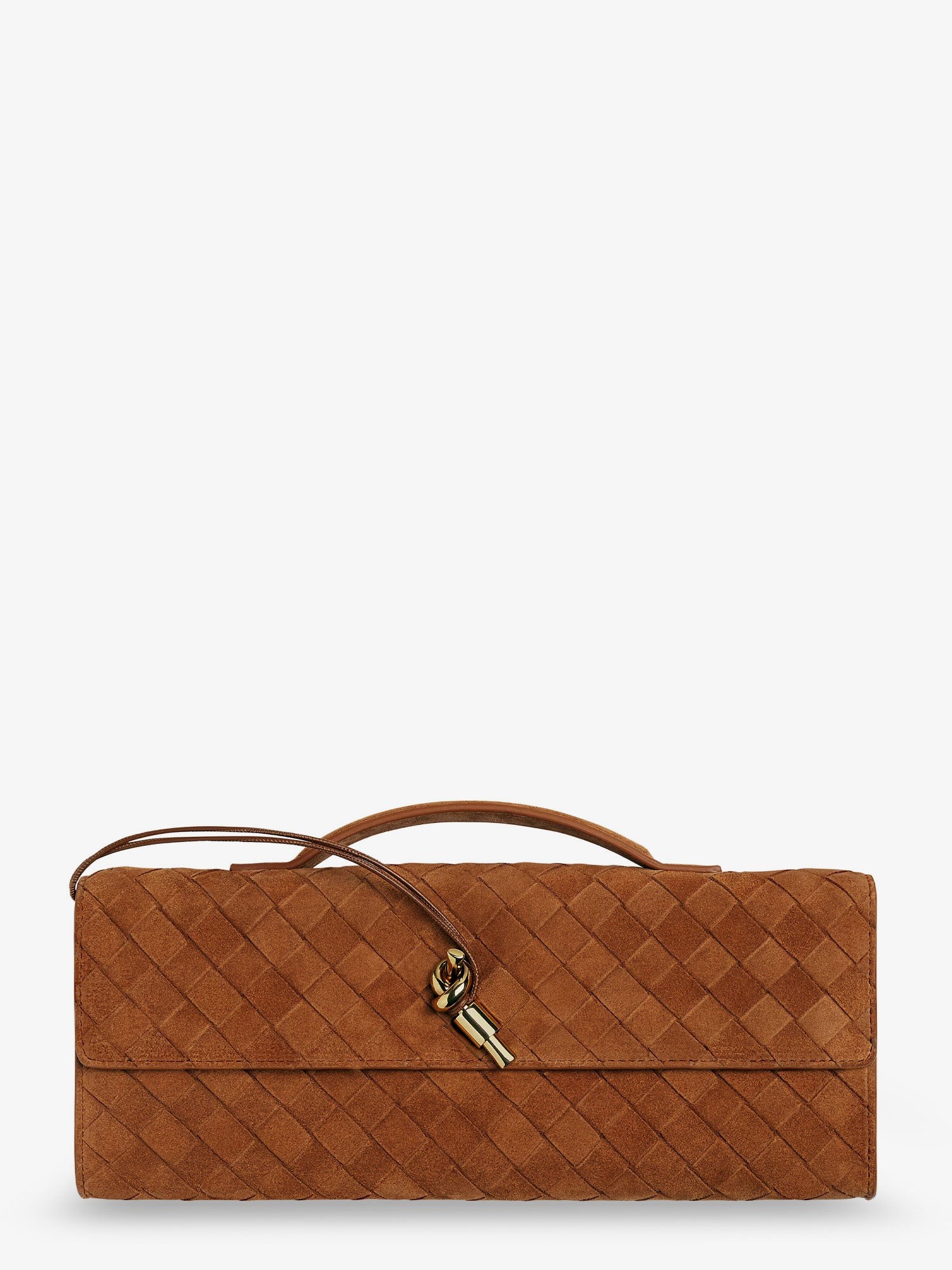 Bottega Veneta Andiamo Clutch Suede Handbag With Intrecciato Motif