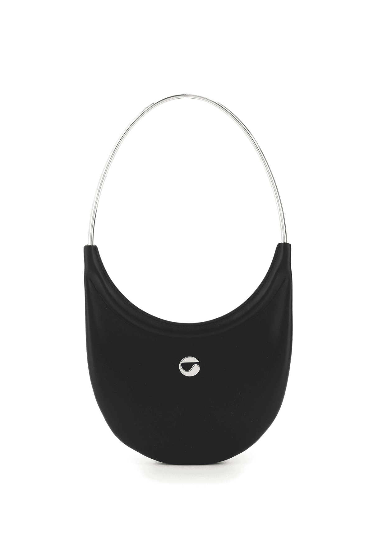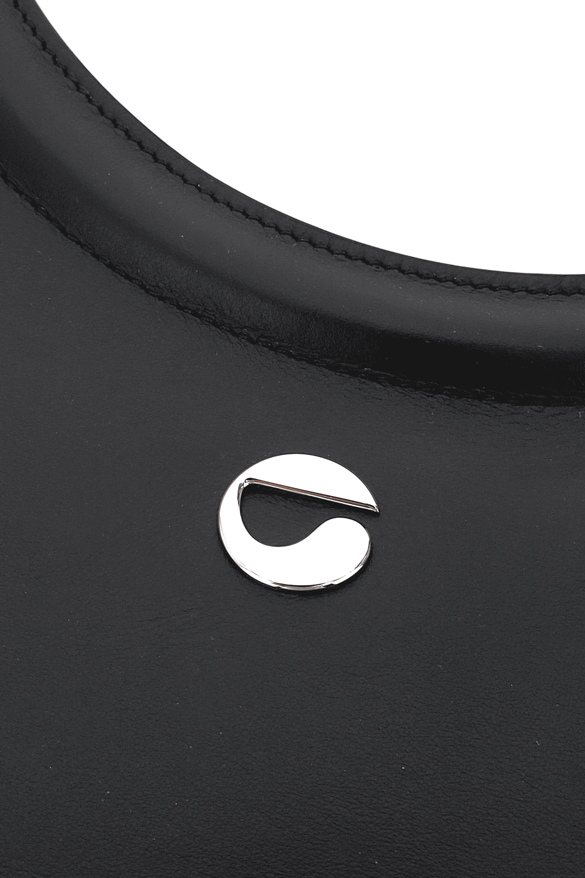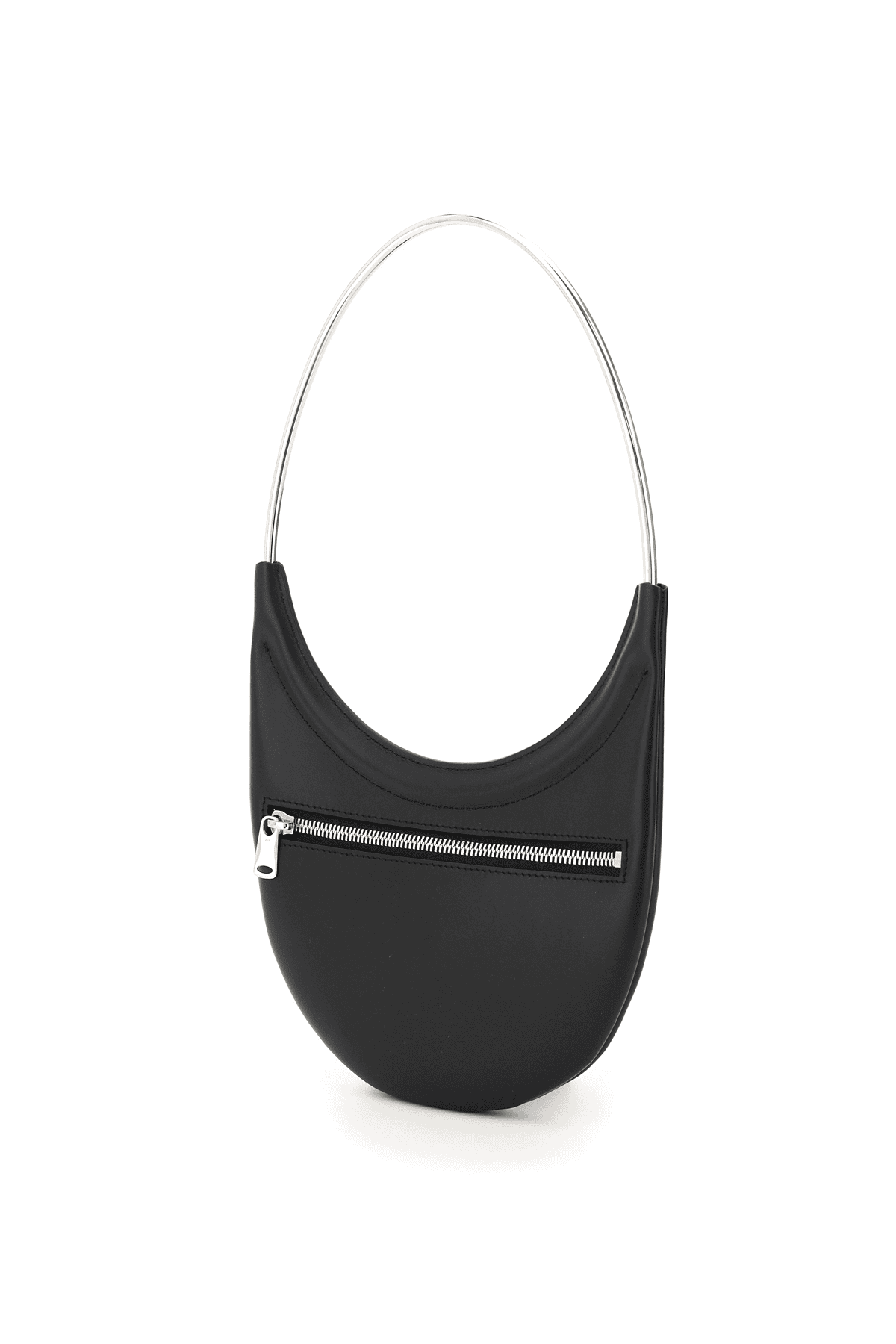 Ring Swipe hobo bag by Coperni crafted in smooth calf leather and characterized by the stiff oval-shaped metal handle. Metal logo on front and back zip closure. Silver-finished metalware.