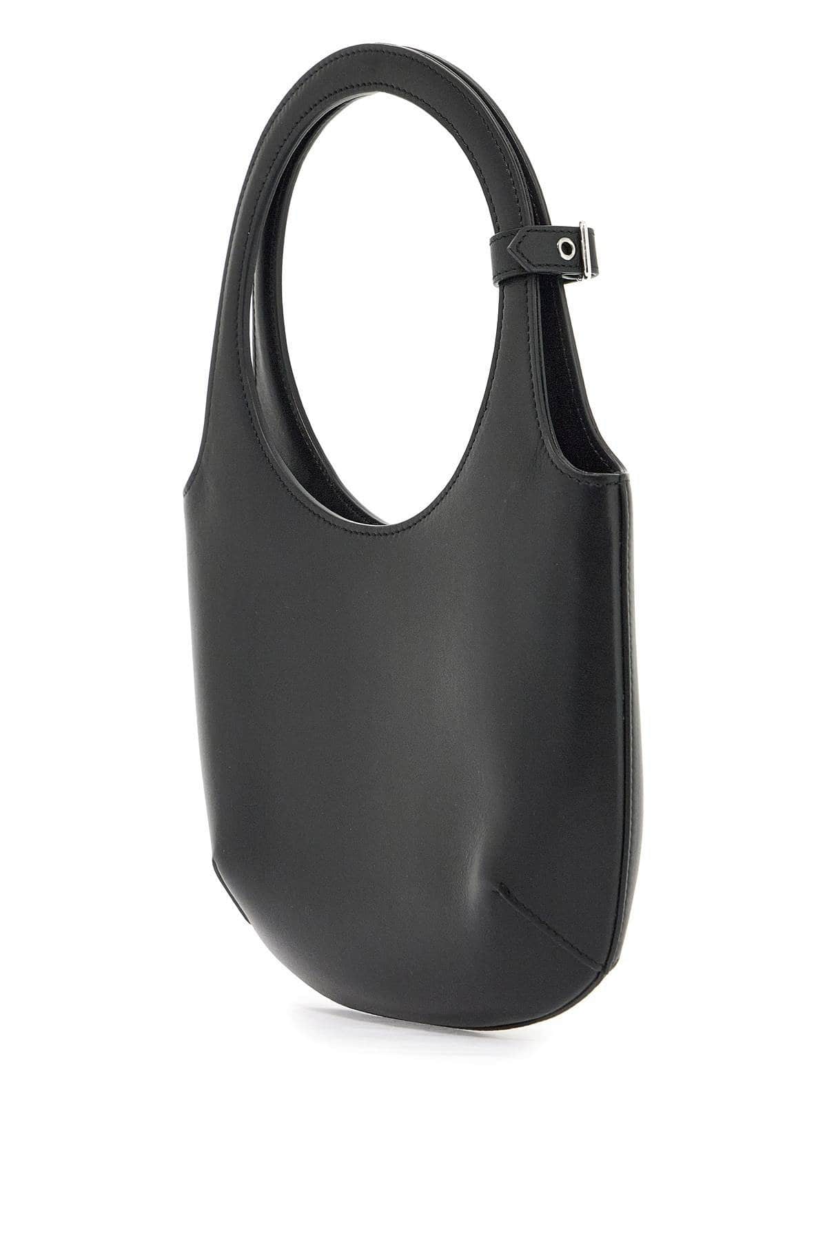 The Holy handbag by Courrges is made of smooth leather with a silver metal monogram. It features a magnetic closure, a removable decorative micro buckle on the handles, and a suede-like microfiber interior with an open pocket. The adjustable and removable shoulder strap adds versatility to this stylish bag.