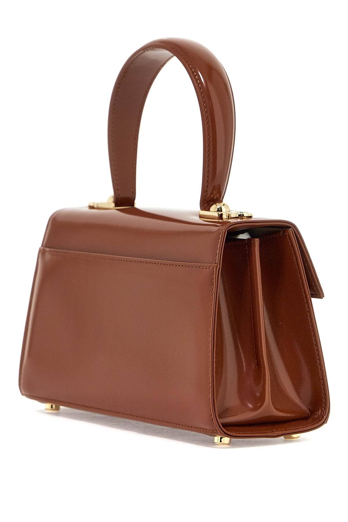 FERRAGAMO handbag made of brushed leather. It features Gancini closure, leather interior with two gusseted compartments featuring one zippered pocket, flat back pocket. Stiff handle and removable leather shoulder strap. Gold-finished metal protective studs at base and hardware.