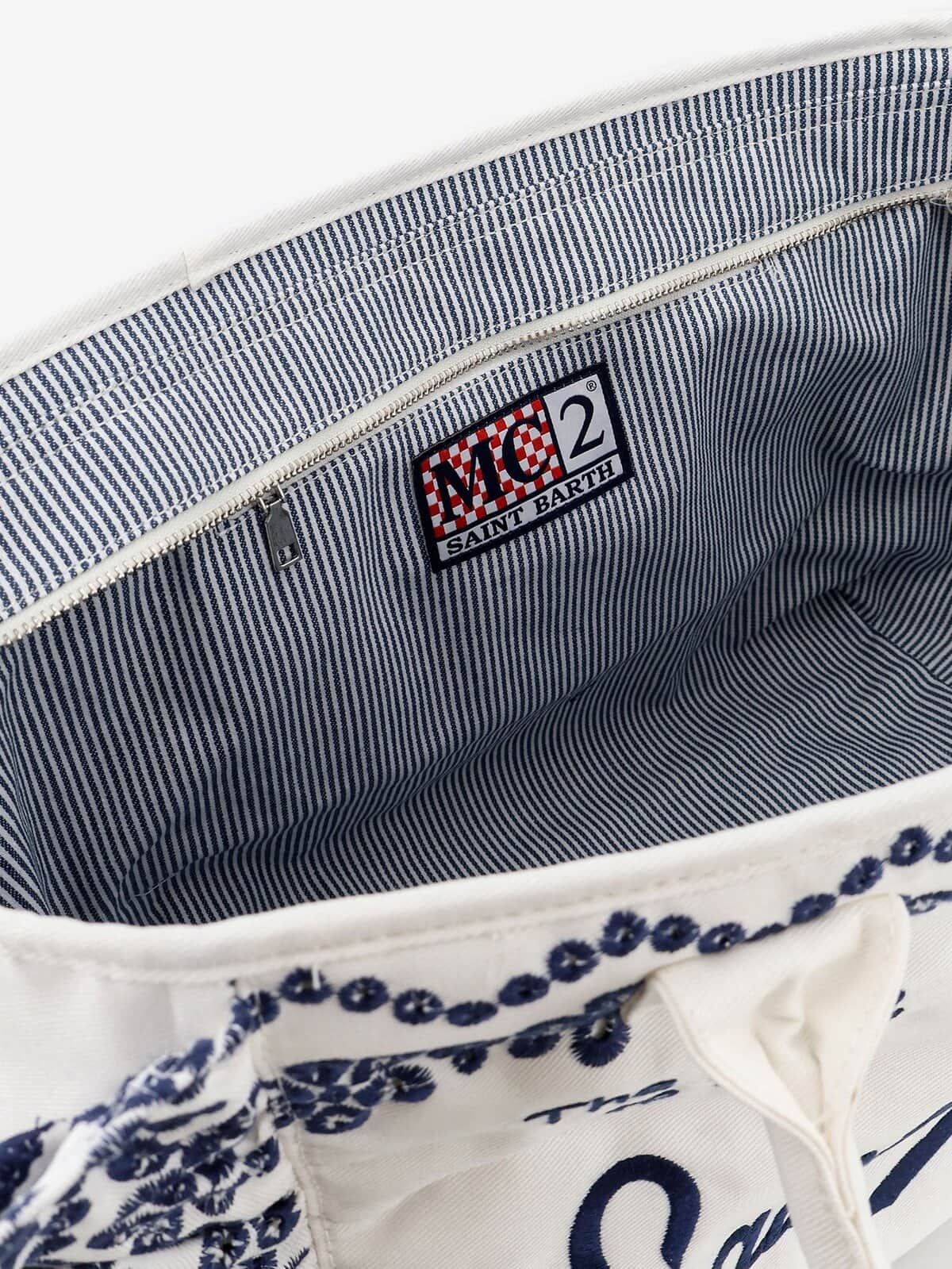 Mc2 Saint Barth Vanity Volant Canvas Handbag With Sangallo Embroidery