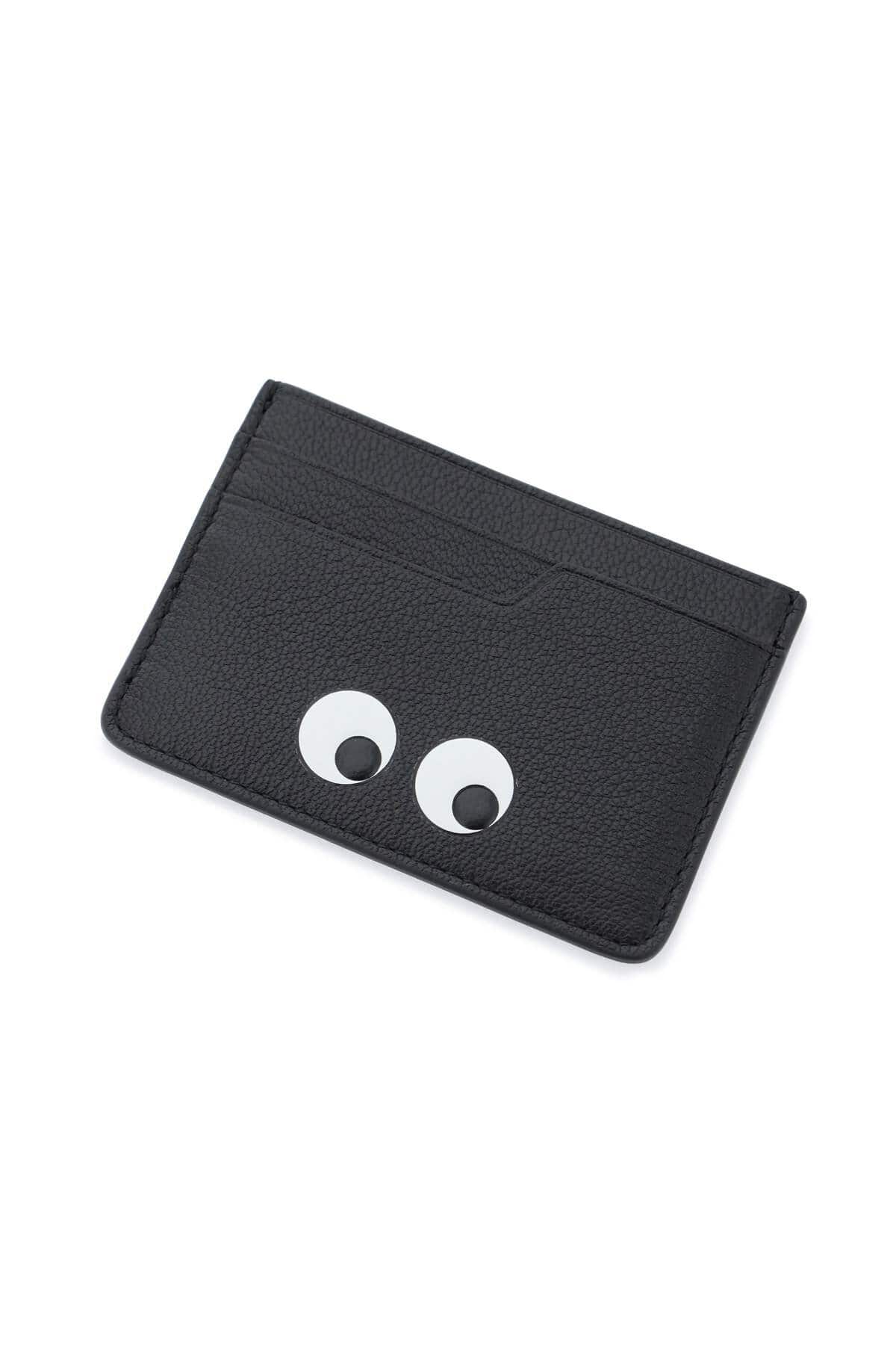 Anya Hindmarch cardholder crafted in grained leather and decorated with iconic Eyes at front. Four credit card slots and a center slit pocket.