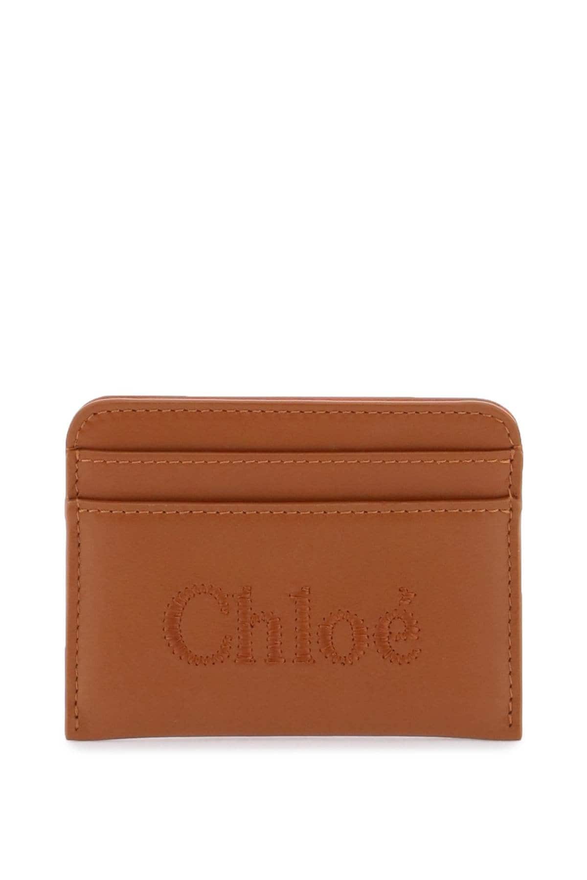 ChloƩ Sense card holder crafted in soft smooth leather and decorated with tonal embroidered logo at front. Four credit card slots and a center slit pocket.