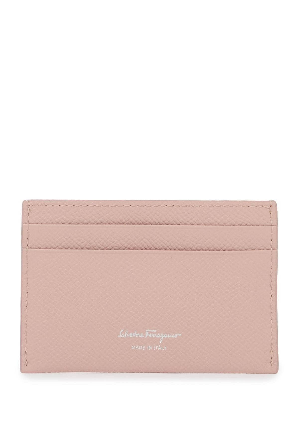 The FERRAGAMO card holder is made of hammered leather and decorated with the iconic silver-finished Gancini on the front. It features four credit card slots and a central slip pocket.