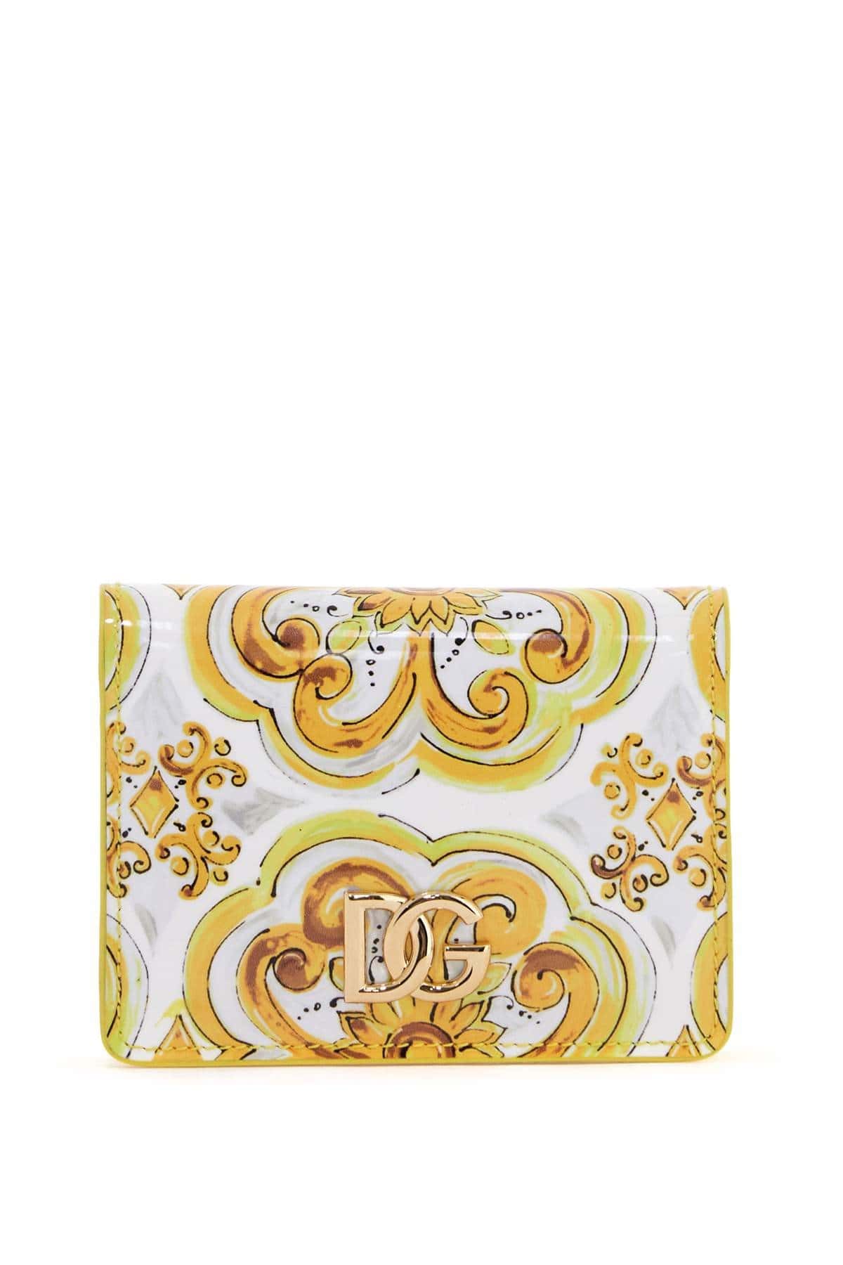 The practical and compact Dolce & Gabbana continental wallet is made of glossy leather with a Maiolica print and personalized with a platinum finish metal DG logo. It features a snap button closure, smooth leather interior with one compartment for bills, two slip pockets, four credit card slots, and a zippered coin pocket.