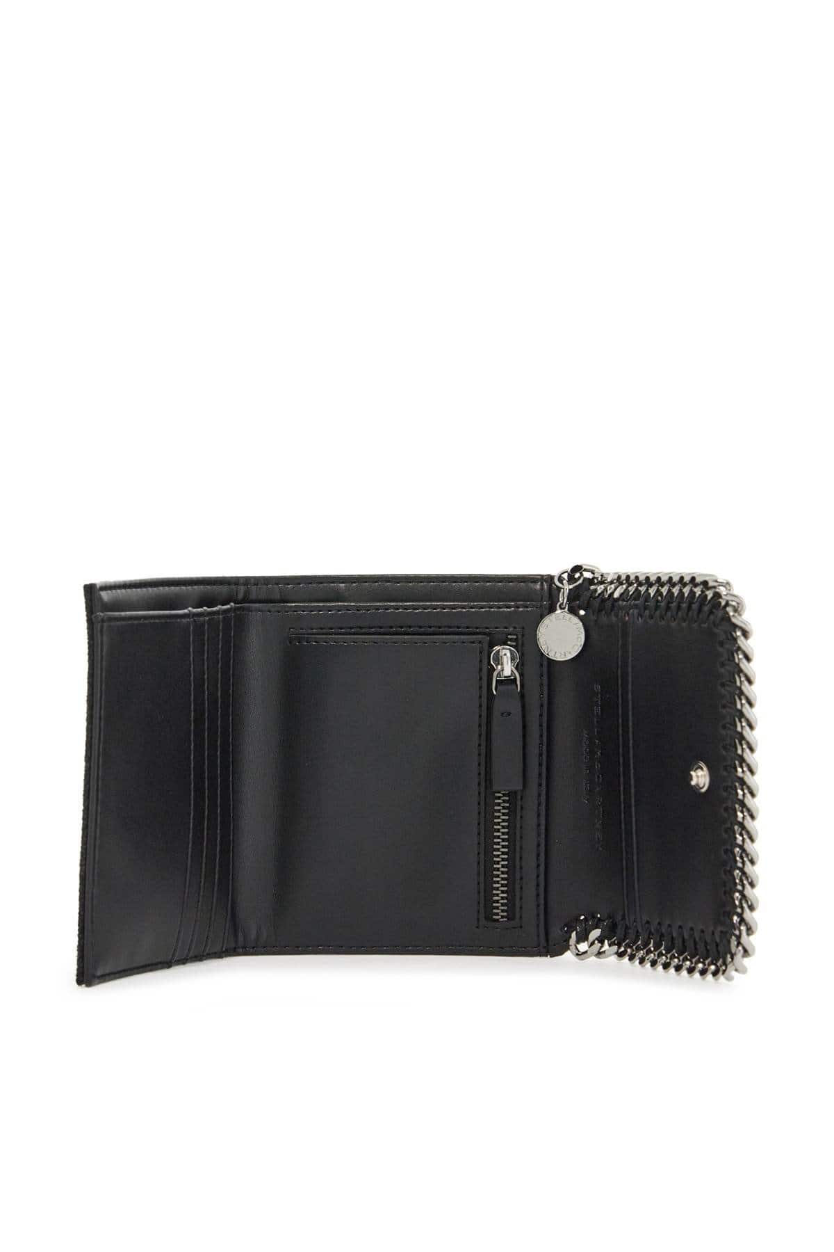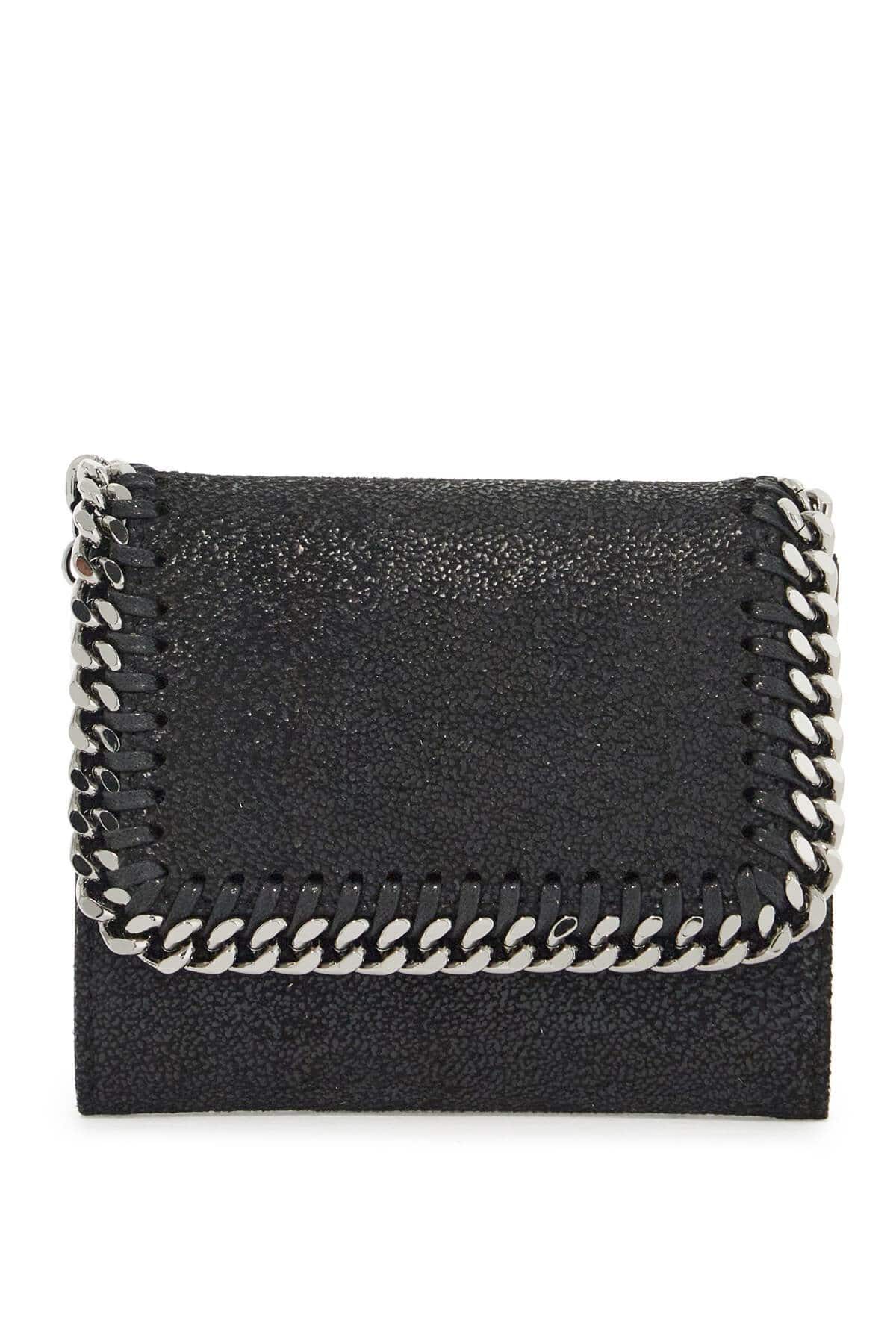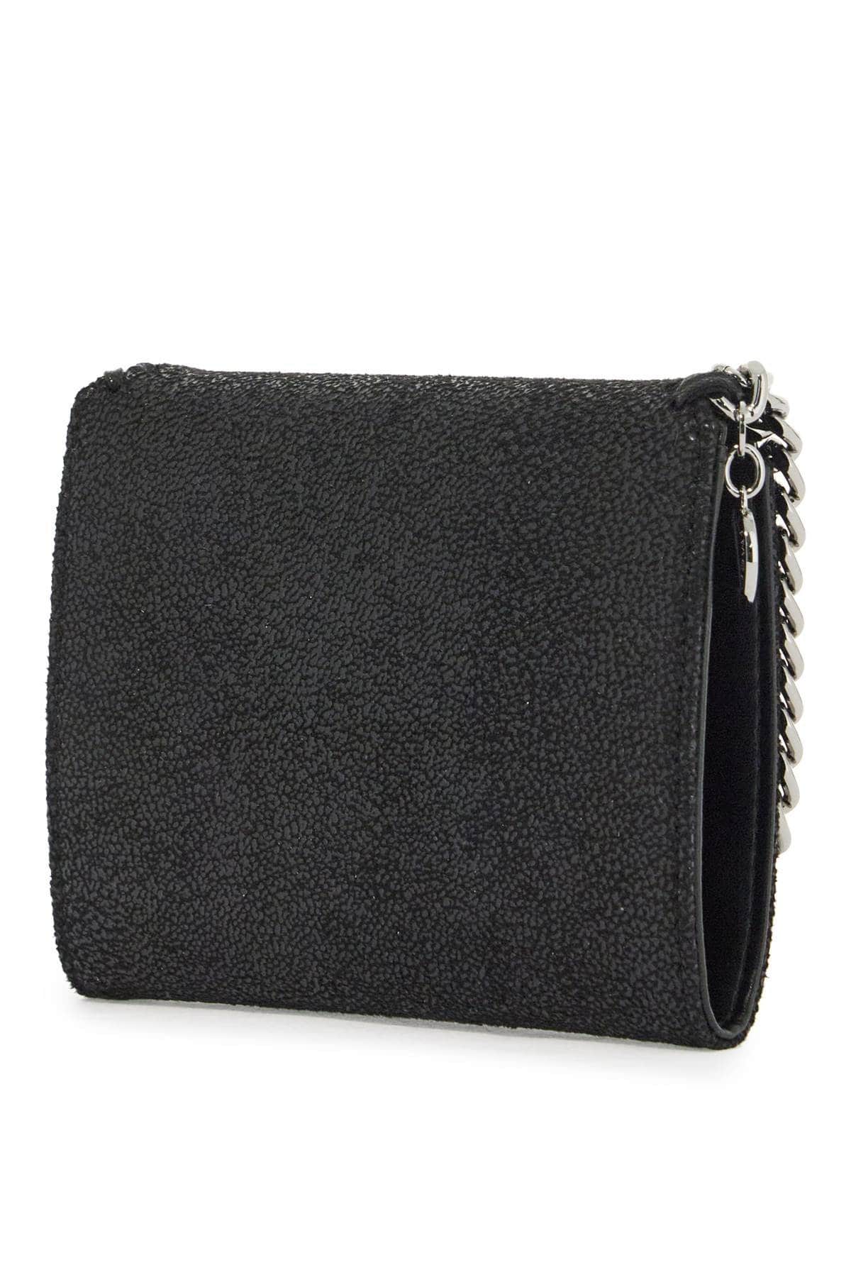 Small Falabella wallet by Stella McCartney in shaggy deer faux leather with the flap featuring the chain applied on the edges and the iconic Logo medal. Snap button closure, faux leather and logo fabric lined interior with bill compartment, ticket pocket, coin pocket with zip, six credit card pockets and embossed logo. Ruthenium-finish metal hardware.