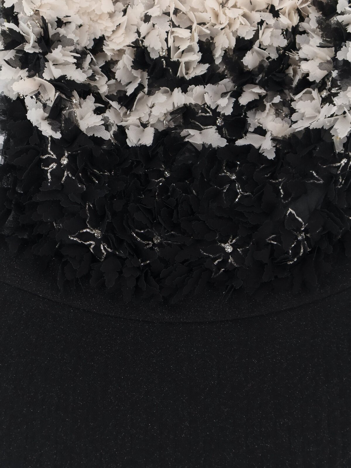 Voile top with floral and rhinestone appliqués