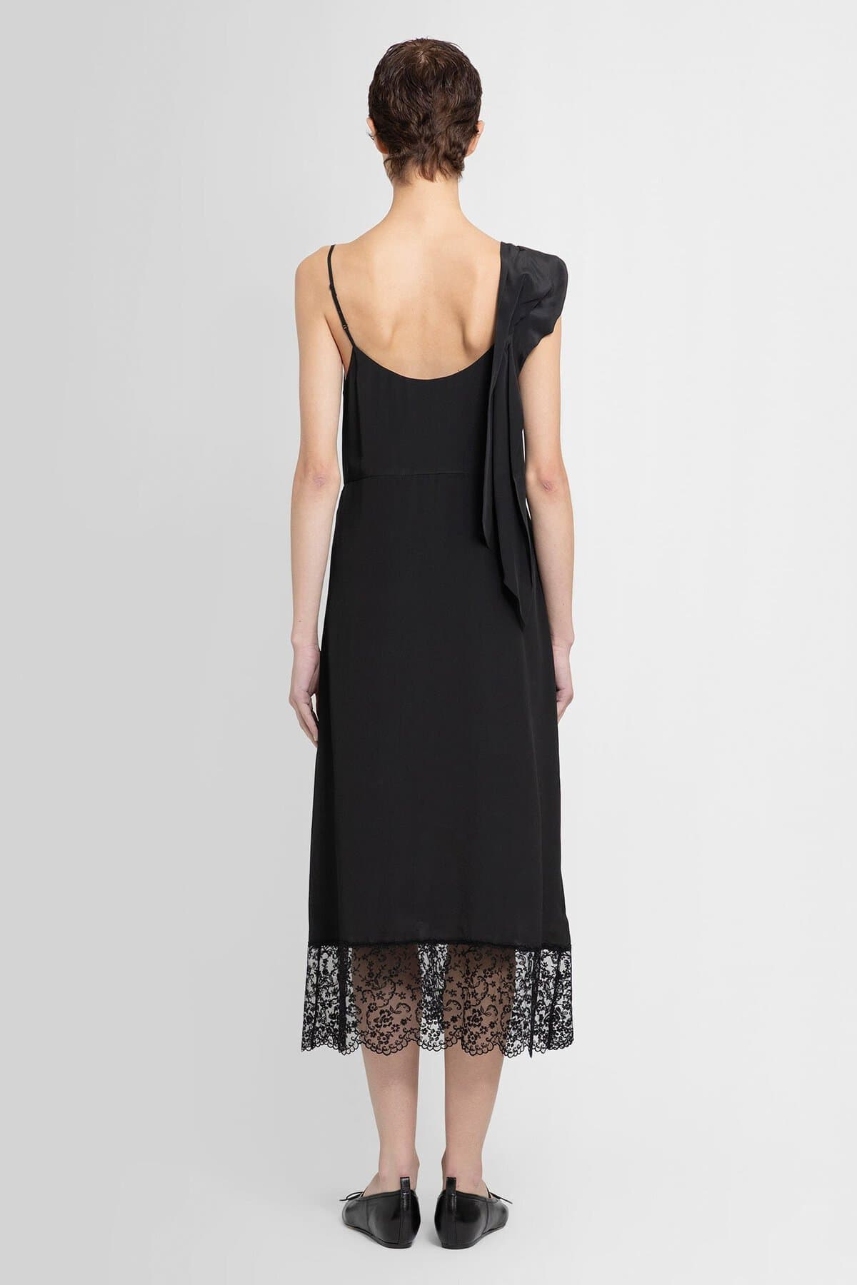 Nero Satin Scoop neck Fabric rose shoulder strap Adjustable shoulder strap Sleeveless Lace hem