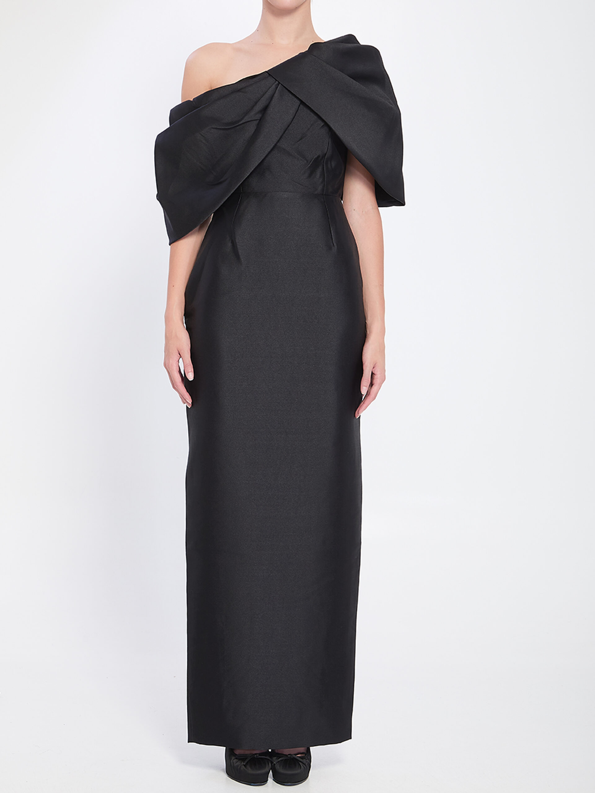 Maxi dress in black polyester. Features a figure-enhancing silhouette and refined detailing.