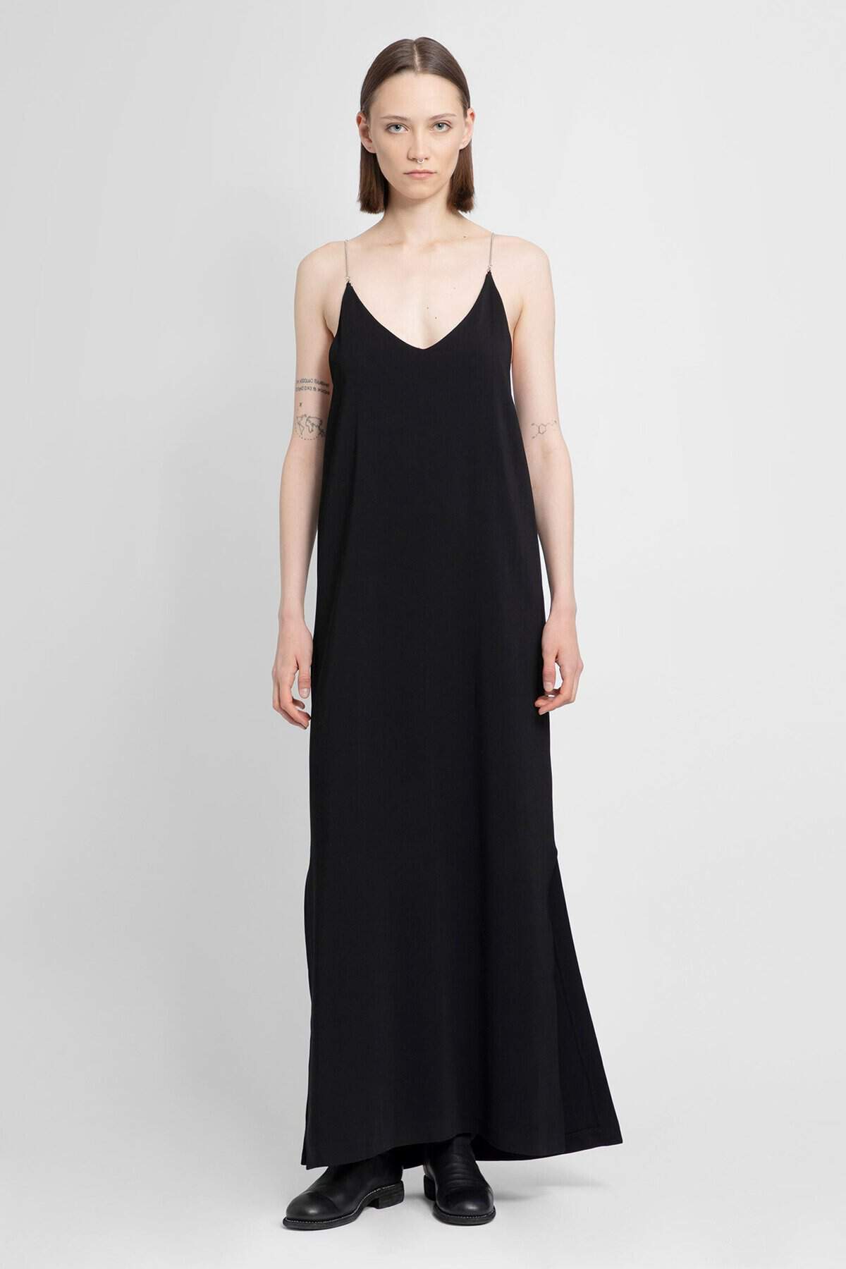 Nero Stretch viscose Scoop neck Chain shoulder straps Sleeveless Open back Ankle length