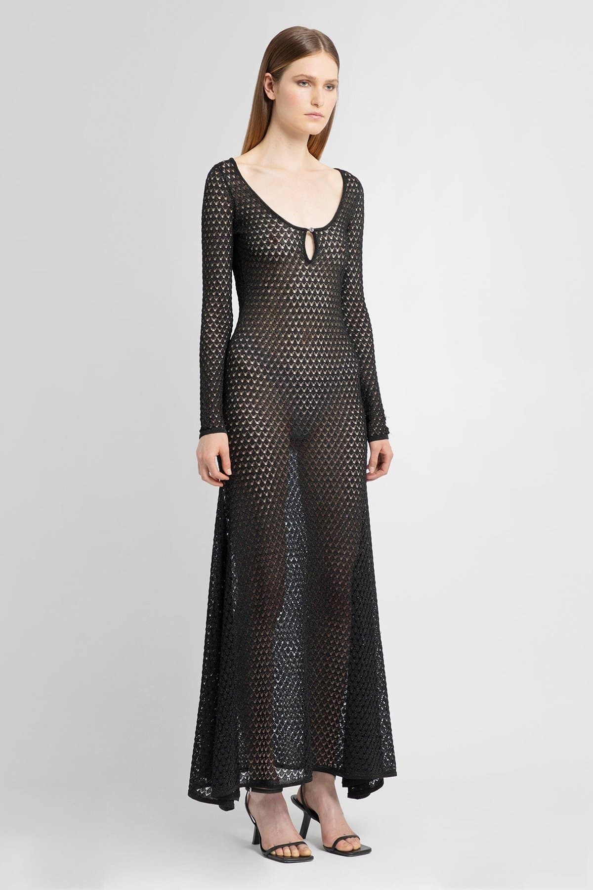 Balck Light knit Round neck Long sleeves Asymmentric hem Ankle lenght