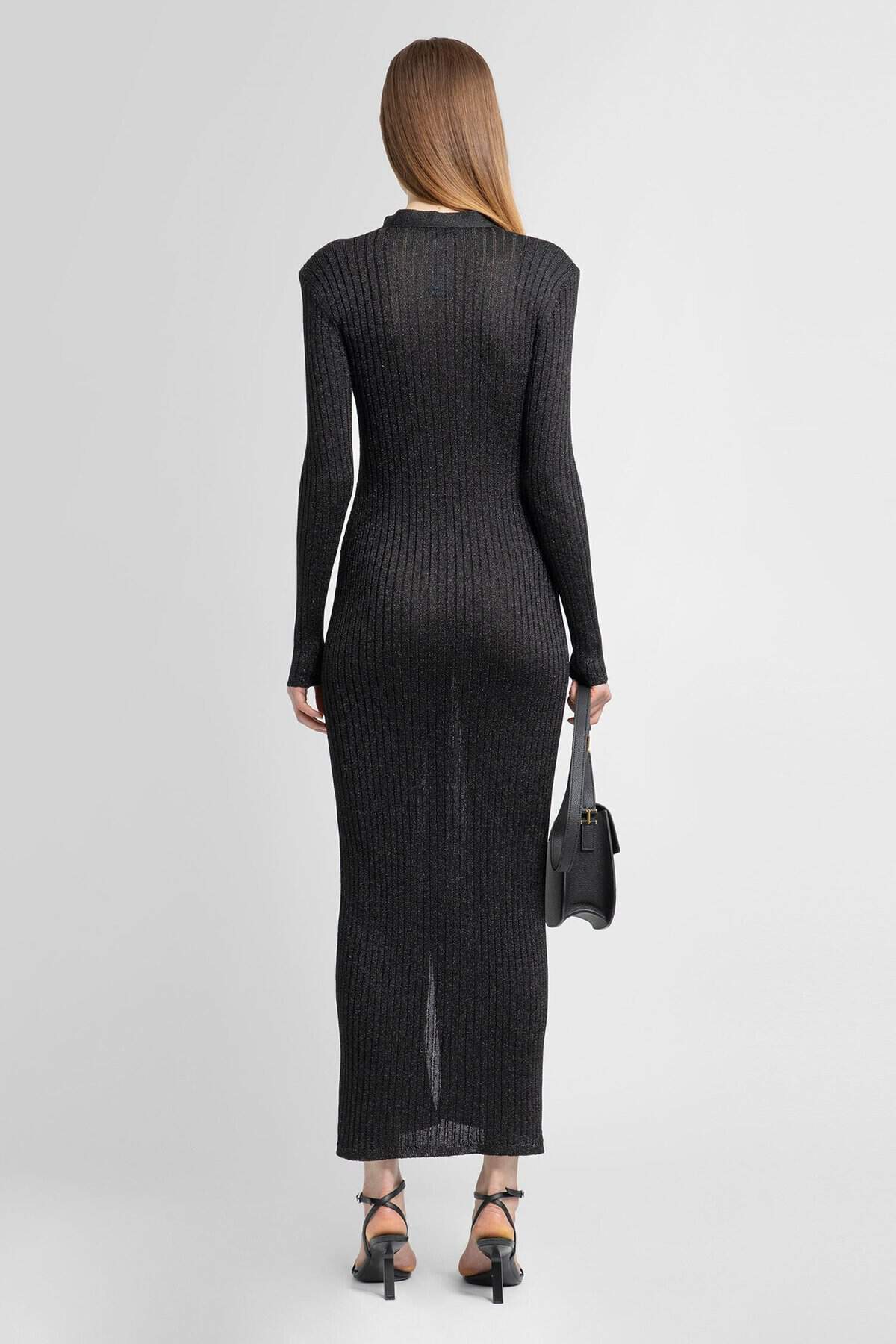 Black Ribbed lurex knit V-neck Button closure Dropped shoulders Long sleeves Ankle length