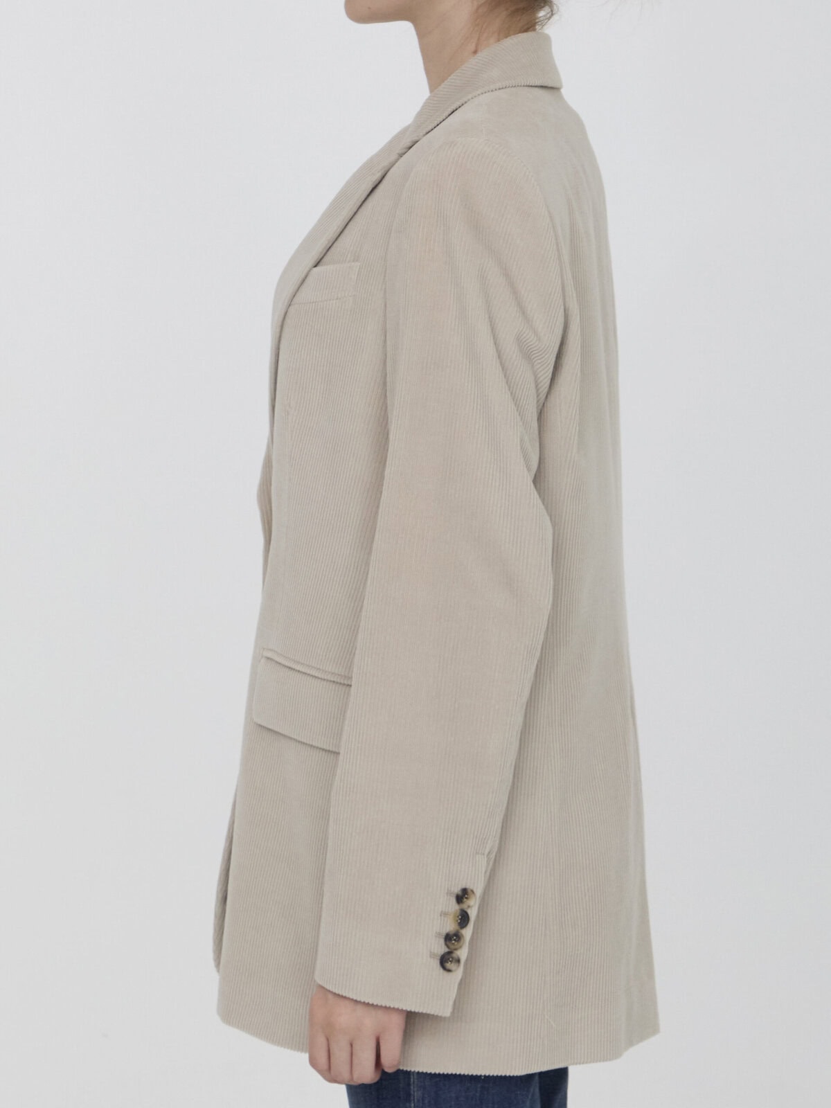 Kuban single-breasted jacket in sand-colored cotton and cashmere corduroy. It features classic lapels, front button closure, a welt pocket on chest, two front flap pockets, buttoned cuffs and back vent. Regular fit.