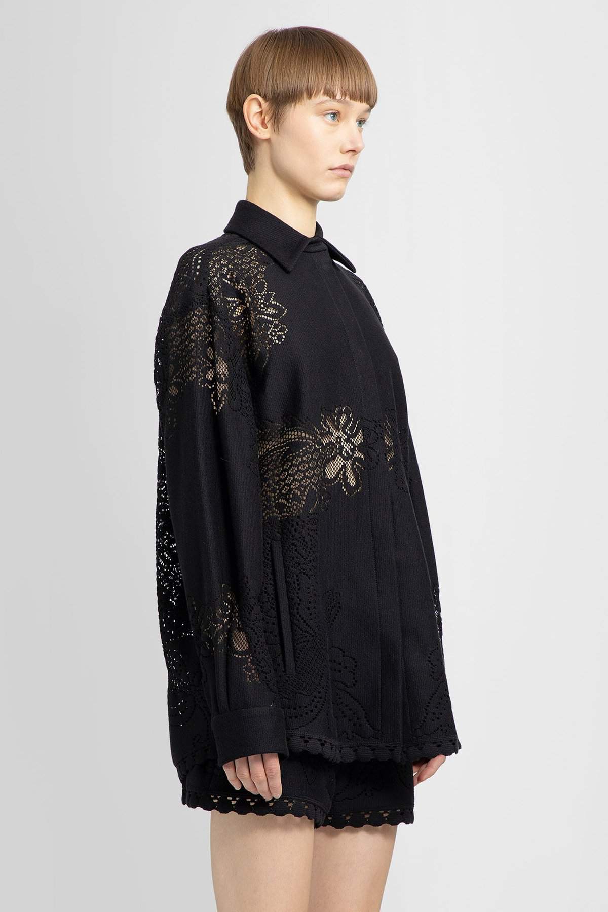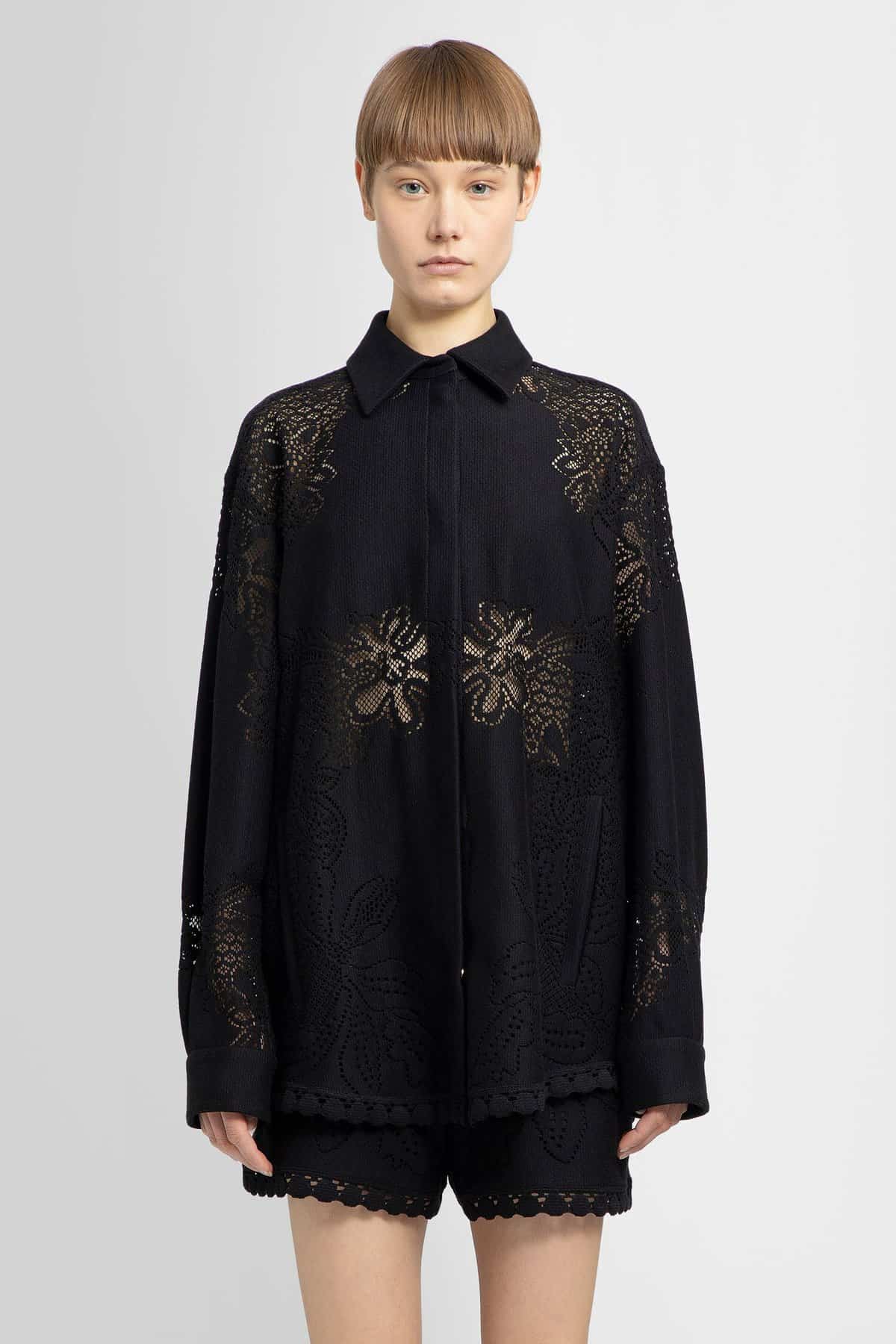Nero Sangallo cotton Collar Concealed button closure Side pockets Dropped shoulders Buttoned cuffs