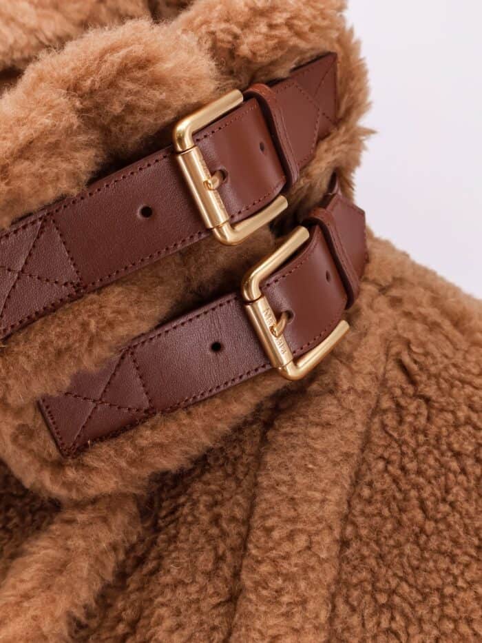 Closure with leather straps and metal buckles#Side slits with snap buttons#Double pocket on the front#made in Italy#88% camel 12% silk#Lining : 100% viscose#Size Range : ONESIZE: in#Custom Tariff : : 61021010in