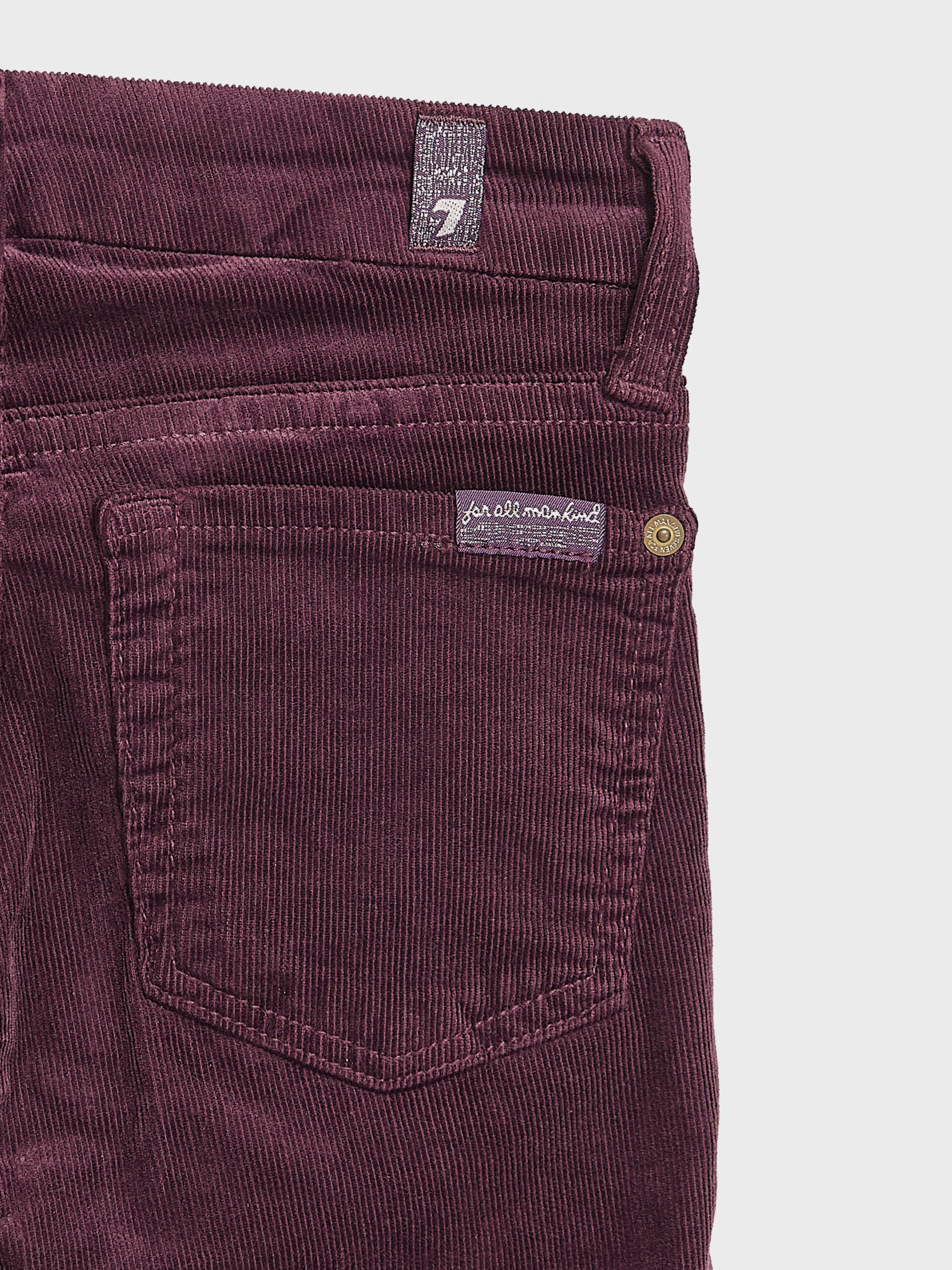 Plum-colored ribbed trousers in a cotton blend. Featuring belt loops, five pockets, classic zip and button closure, a velvety effect, and a low waist. Slim fit.