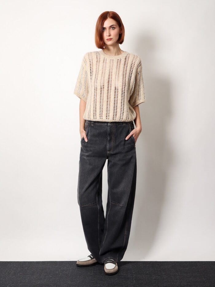 SKU: MA095P5932_C8999 – Closure with zip and rose-coloured metal button wide leg with contrasting stitched profile five pockets and iconic leather detail made in italy 100% cotton