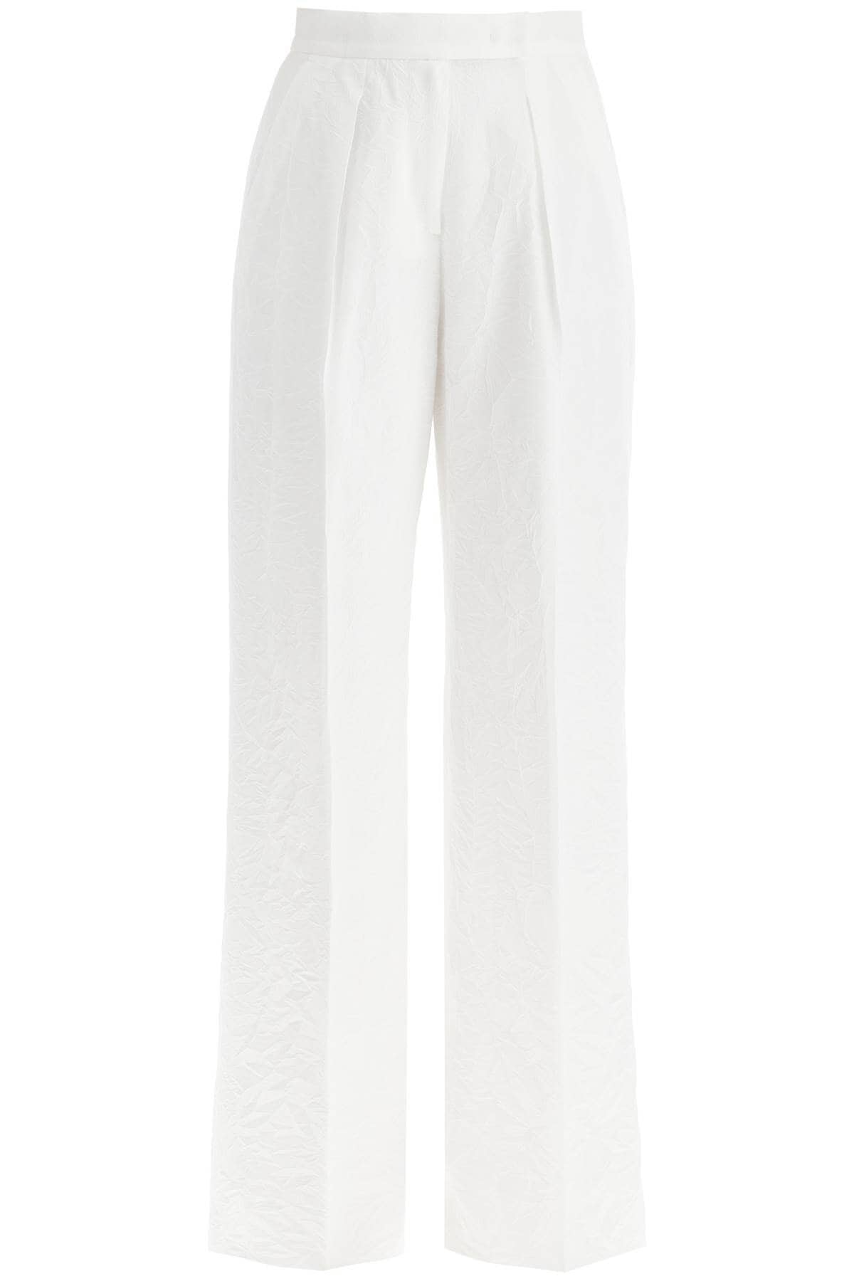 Max Mara high-waisted pants made of microfaille craquelé with a tailored-inspired design featuring a straight cut, front darts and French pockets. Zipper and hidden hooks closure. The model is 177 cm tall and wears size IT 40.